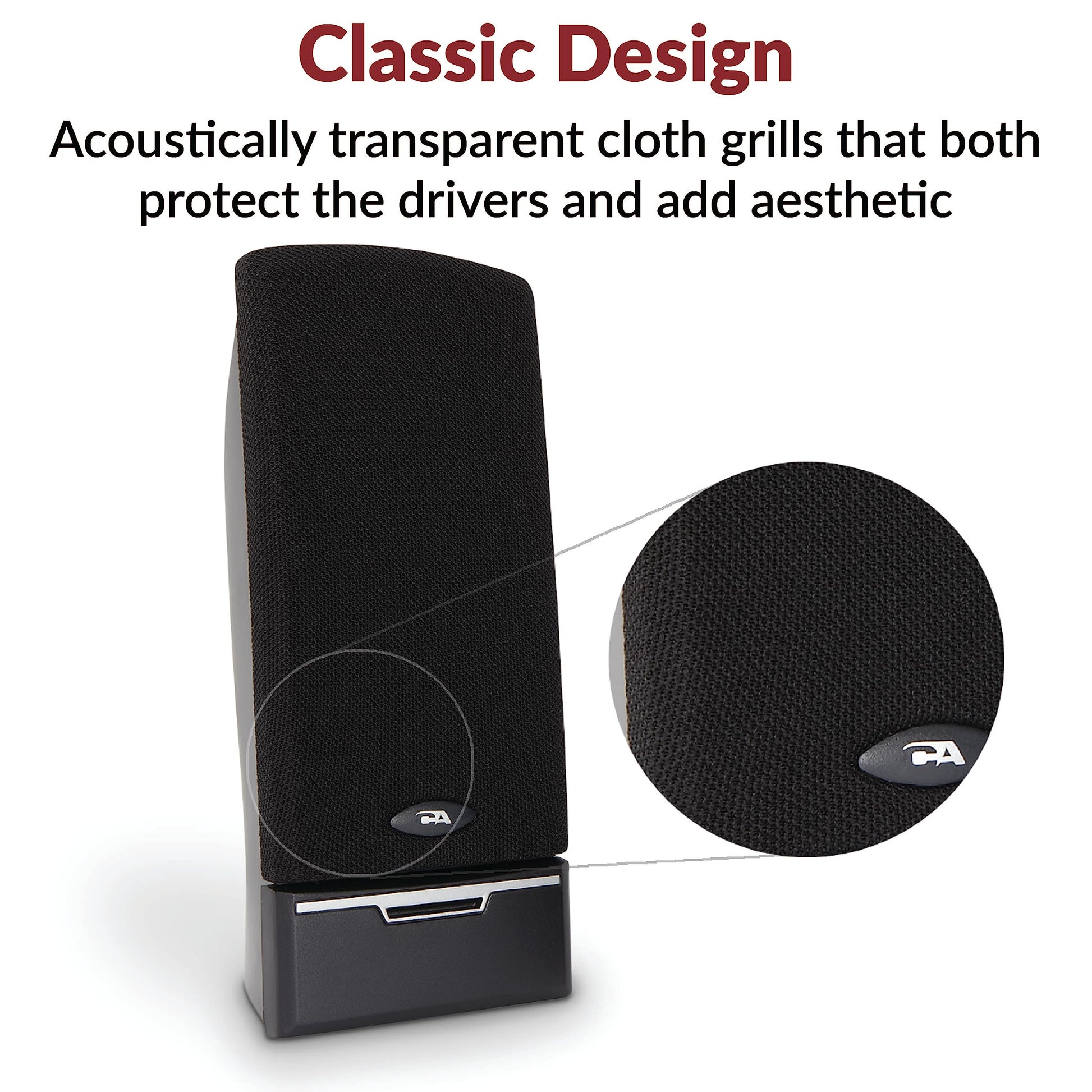- Attractive design – Featuring discrete cloth grill covers and magnetically shielded satellite speakers, this stereo speaker system looks great with any setup. Easily access power, volume, and headphone jack from the front of the right speaker. An LED power indicator makes it easy to see if the speakers are on.