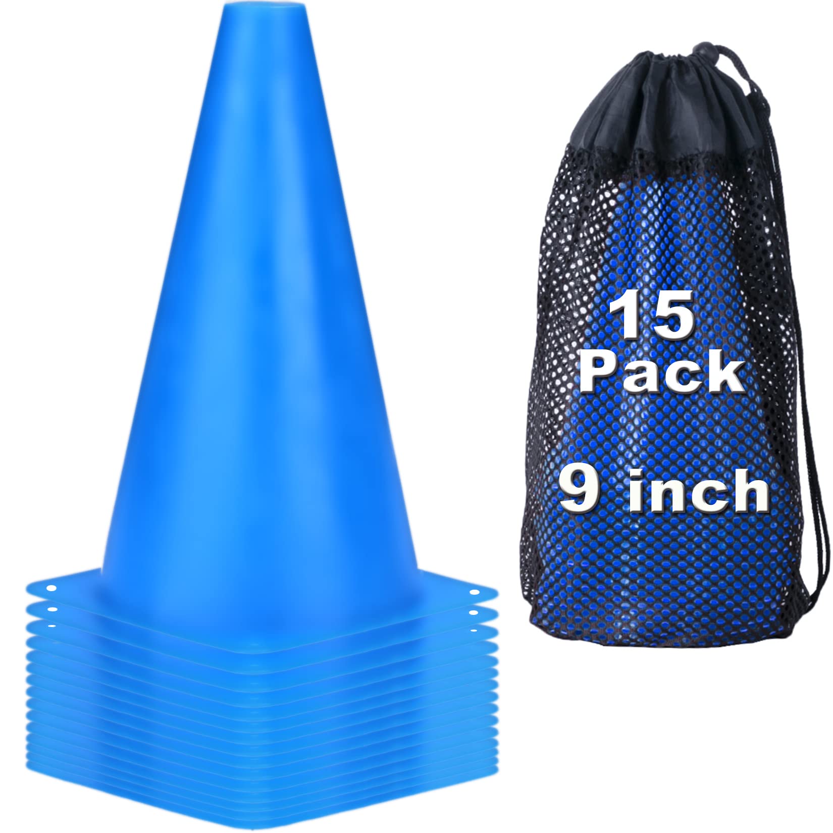 cyrico 9 Inch Cones Sports, 15 Pack Soccer Training Cones Agility Field Parking Safety Blue Plastic Traffic Cones for Football Basketball Drills, Indoor and Outdoor Games Activity