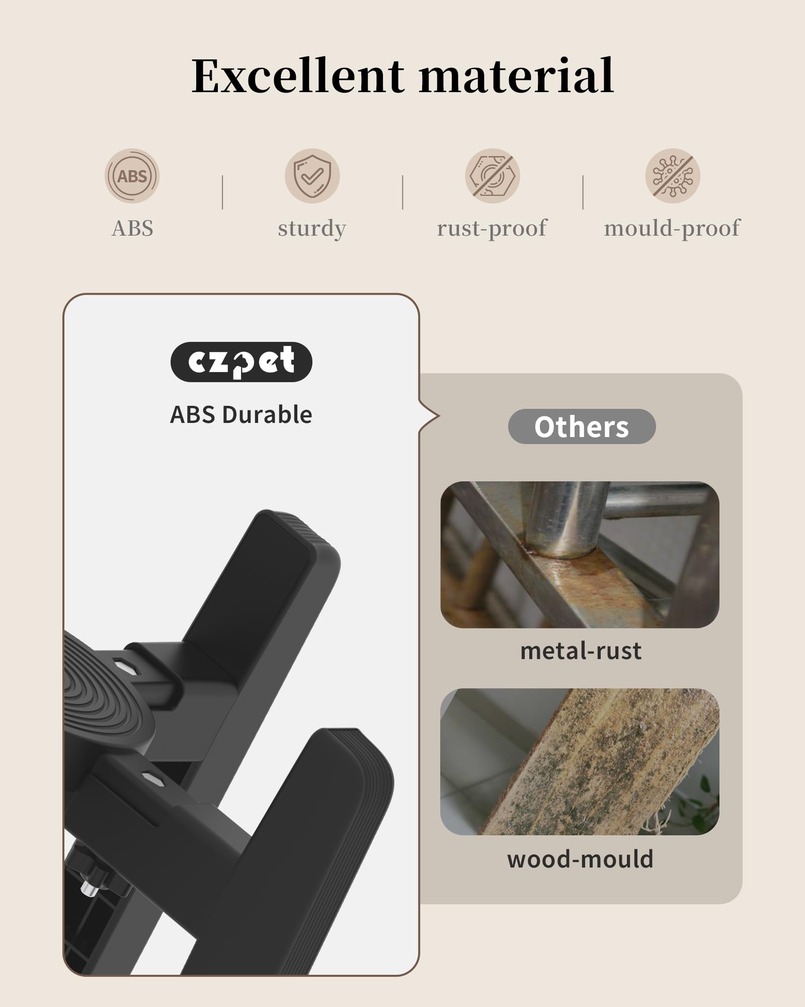 - [Stable & Stury] Tightened with screws, CZPET pet bowl can keep stable while pets eating and drinking. And thanks to great anti-slip feet mats, you don't need to worry about overturning when your pets get close to it, which avoids many cleaning troubles for you. The stand is made of durable ABS material, which will keep stury after many times of adjustment or use, better than wood, bamboo or steel. A save for pets household
