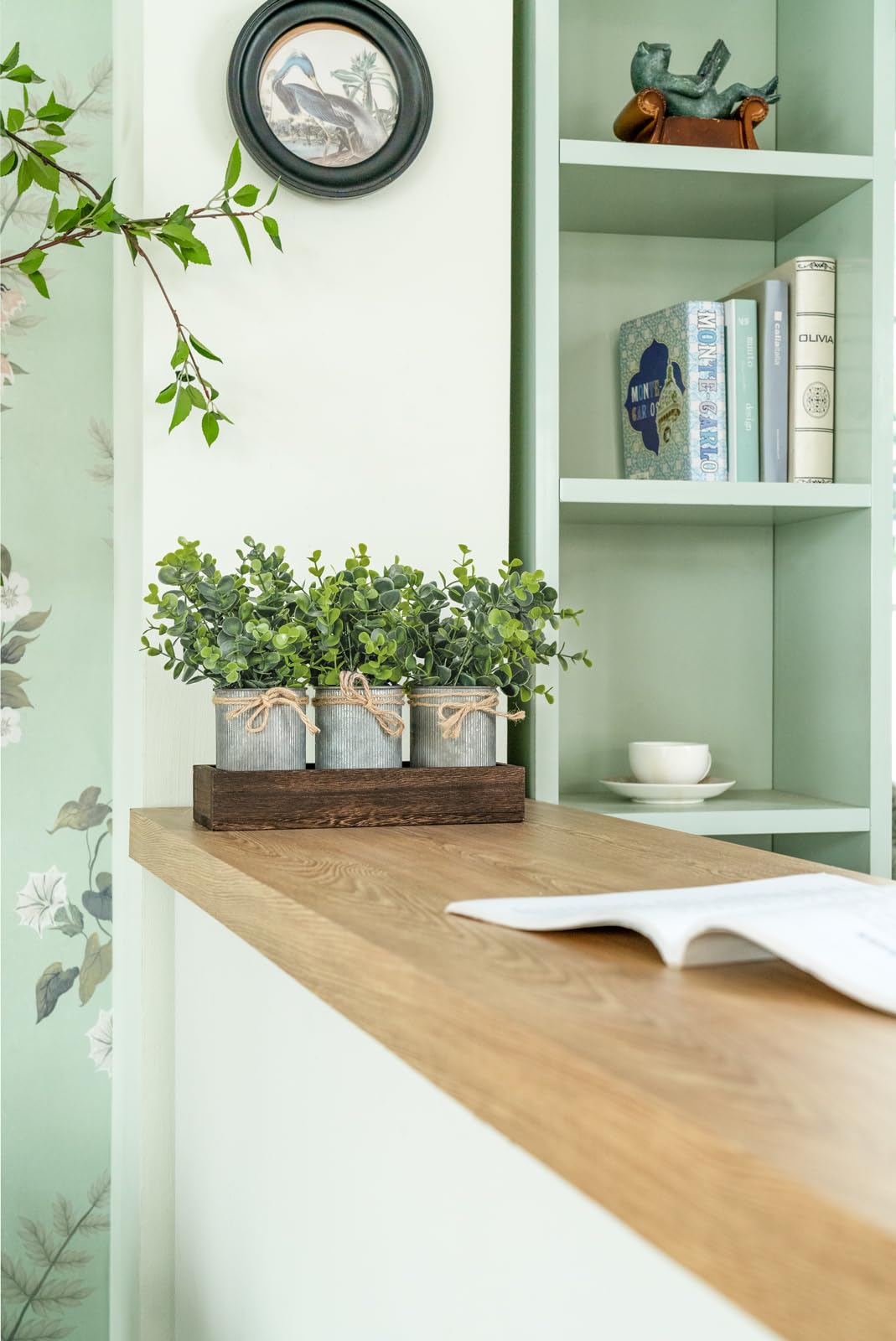 - Rustic decor set: Spring table decor comes with a wood open box with 3 metal planter jars and 3 artificial eucalyptus.This table centerpieces for dining room is perfect for organizing your dining room counter table or adding rustic style to your room. Our table decorations are so pretty and fun and really tie a room together