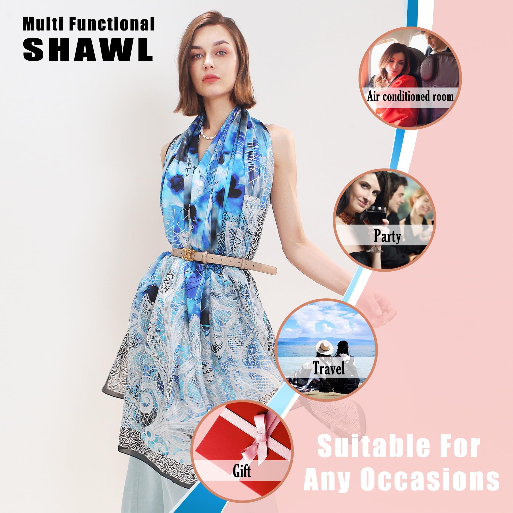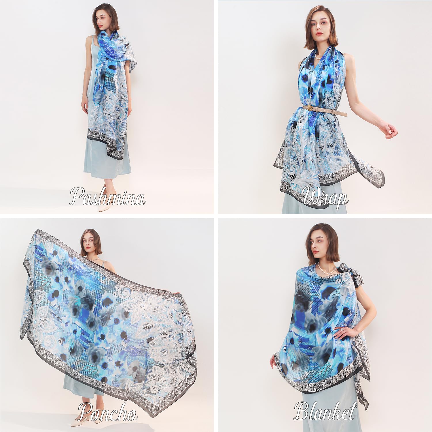 - Luxurious Wraps Shawls for women: 100% mulberry silk, natural fiber, 90*43.3 inches, two times larger than regular shawl, less than 2 oz lightweight. Ideal shawls for women who value comfort and beauty. Perfect for parties, weddings, travel or as an amazing gift.