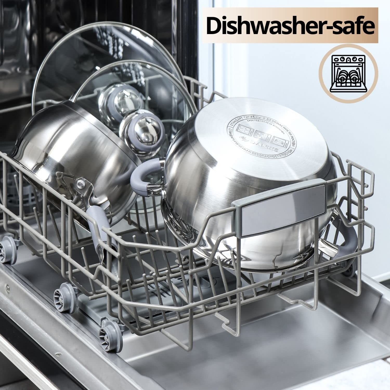 Daniks Modern 10-Piece Stainless Steel Induction Cookware Set – Dishwasher Safe Saucepan, Pots with Heatproof Handles, Glass Lids, Silver