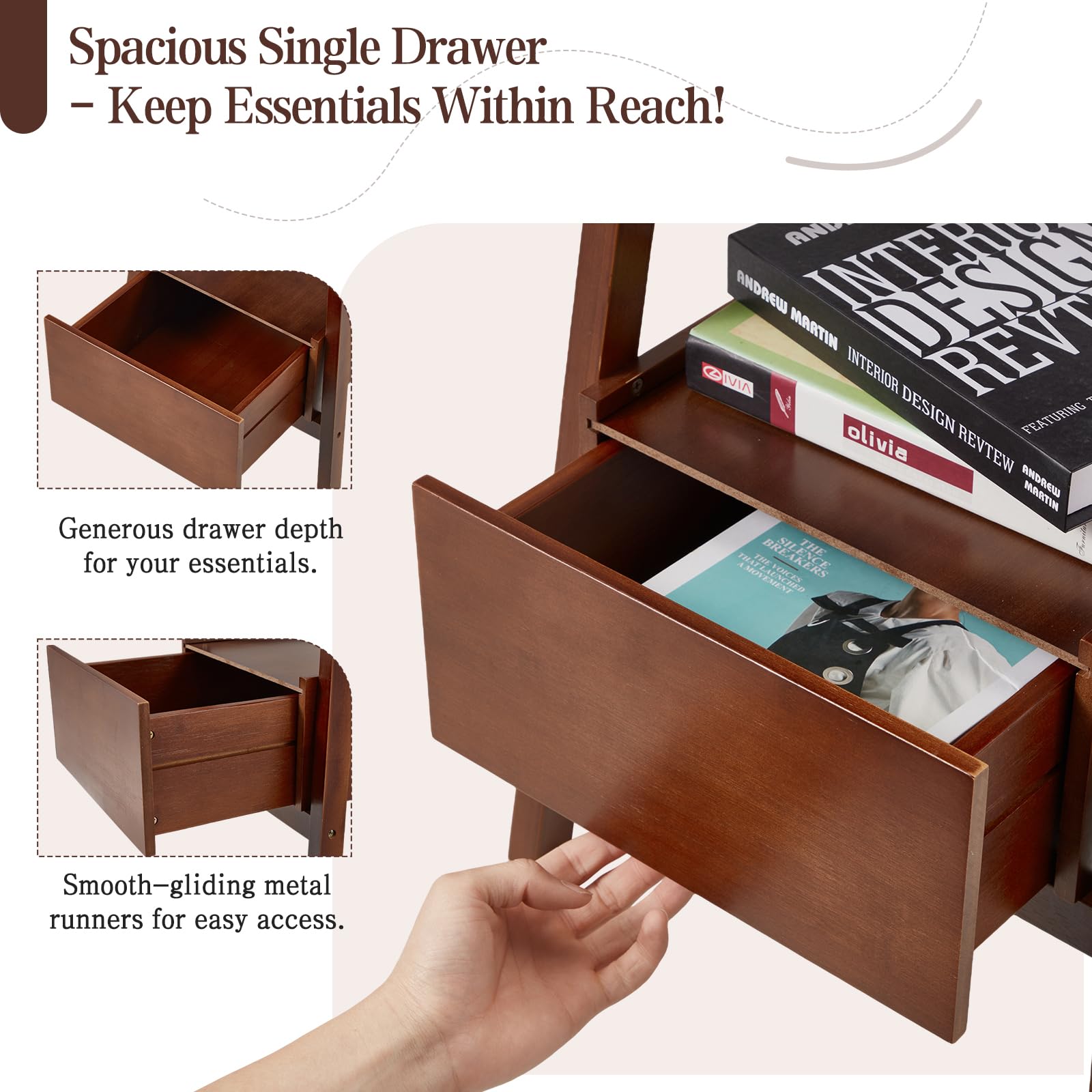 - Space-Saving Compact Design: Measuring just 21.5' wide x 15.7' deep x 13.8' tall, this cleverly proportioned nightstand fits perfectly in tight bedroom spaces without sacrificing storage capacity. The slim profile works well in small apartments, dorm rooms, or as an additional side table in master bedrooms. Despite its compact footprint, the generous drawer and shelf provide all the storage space you need within arm's reach