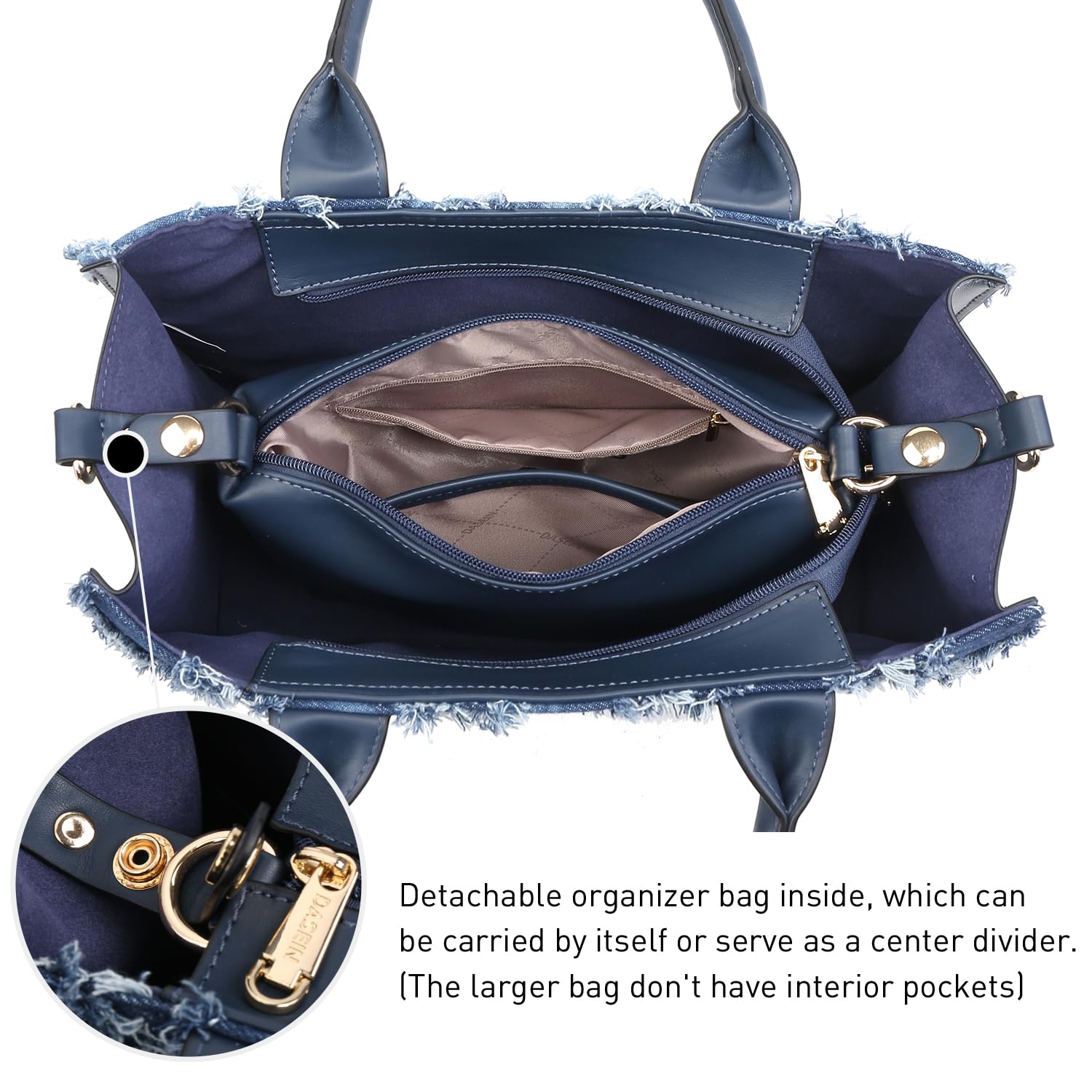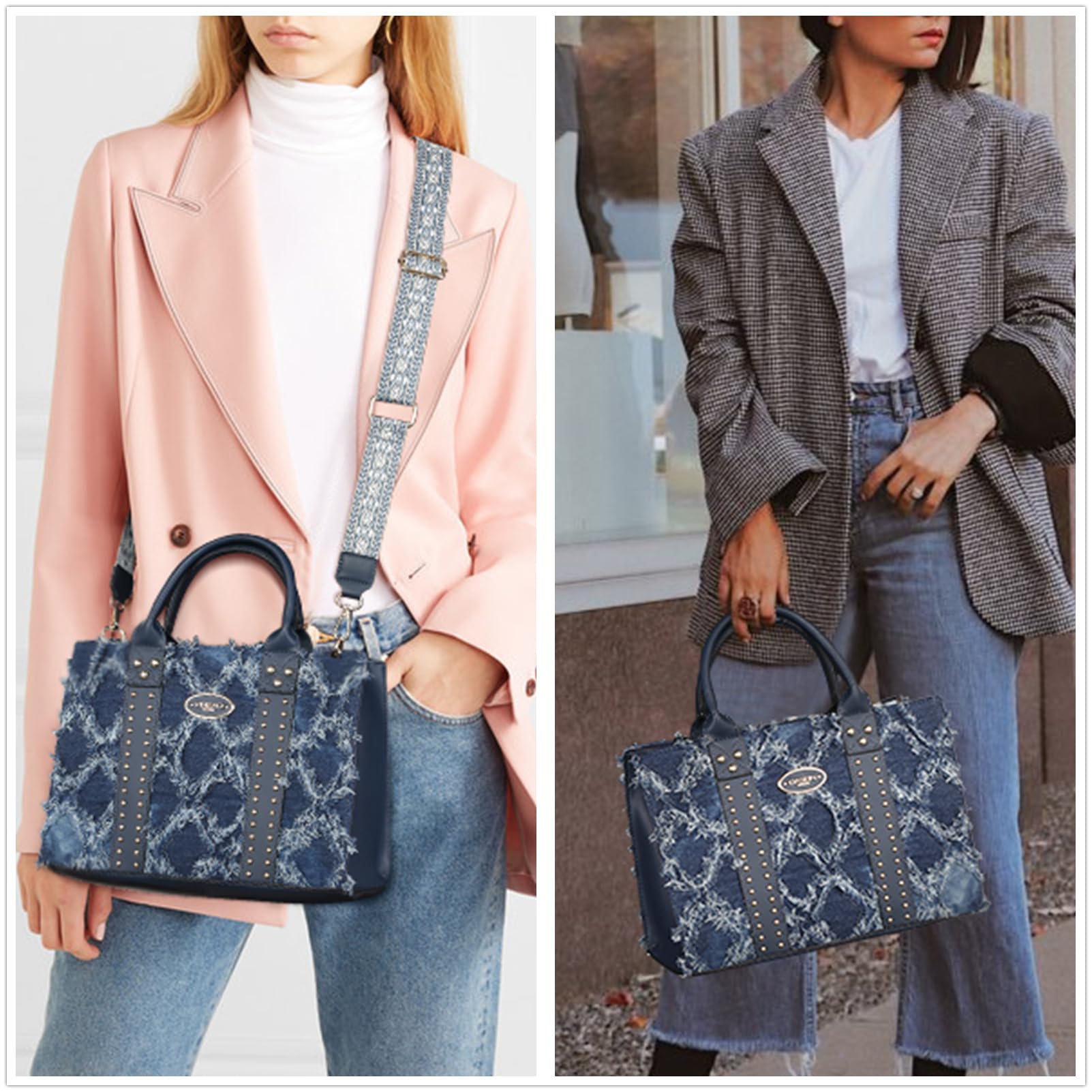 - The purse features chic stud accents on the front and edges, enhancing its appearance. It includes a detachable organizer bag for versatility and a matching wristlet purse for convenience while on the move.