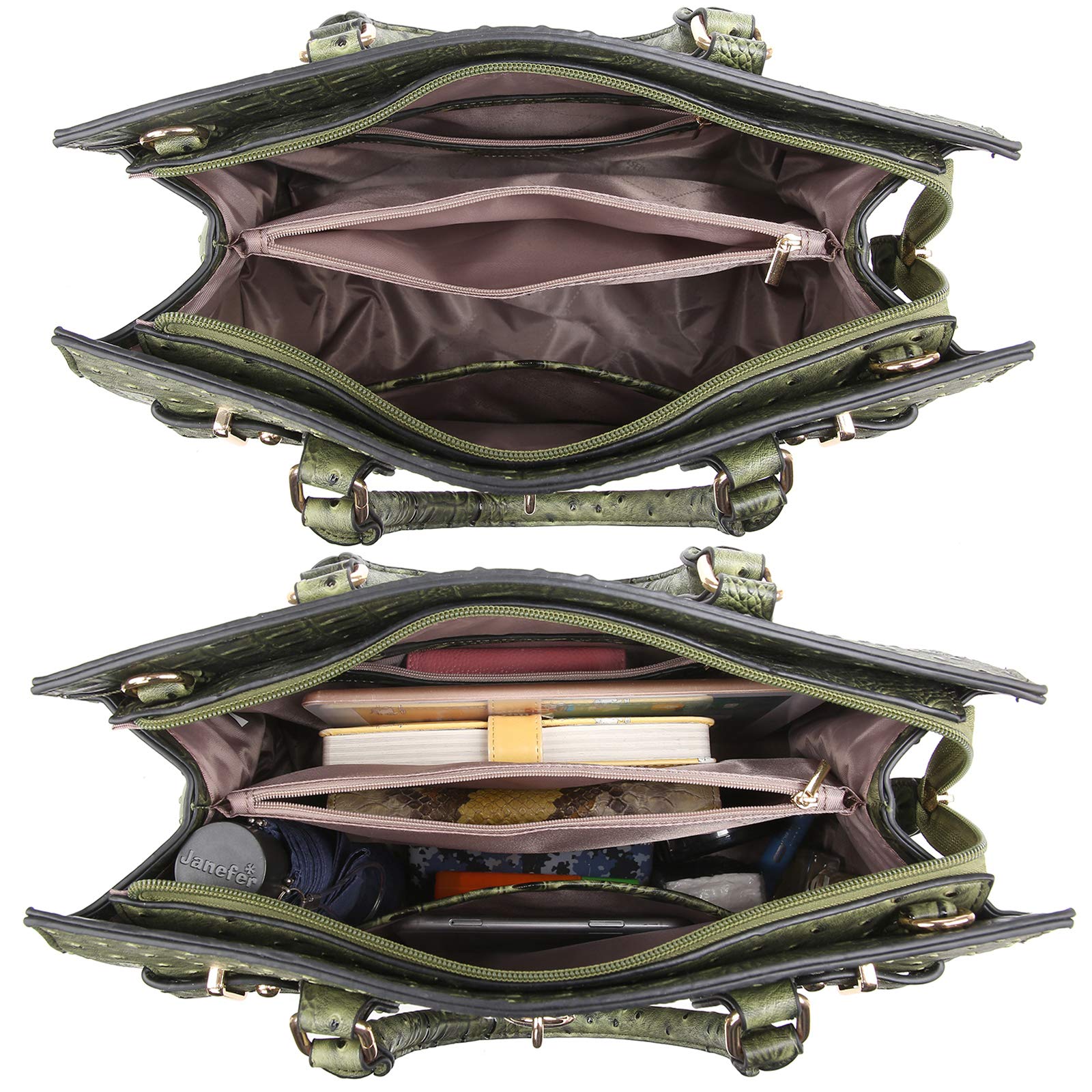 - Stylish Design: Detailed with high quality gold tone hardware, zippers, bottom studs, comfortable handles. Detailed with a decorative lock (not functional).