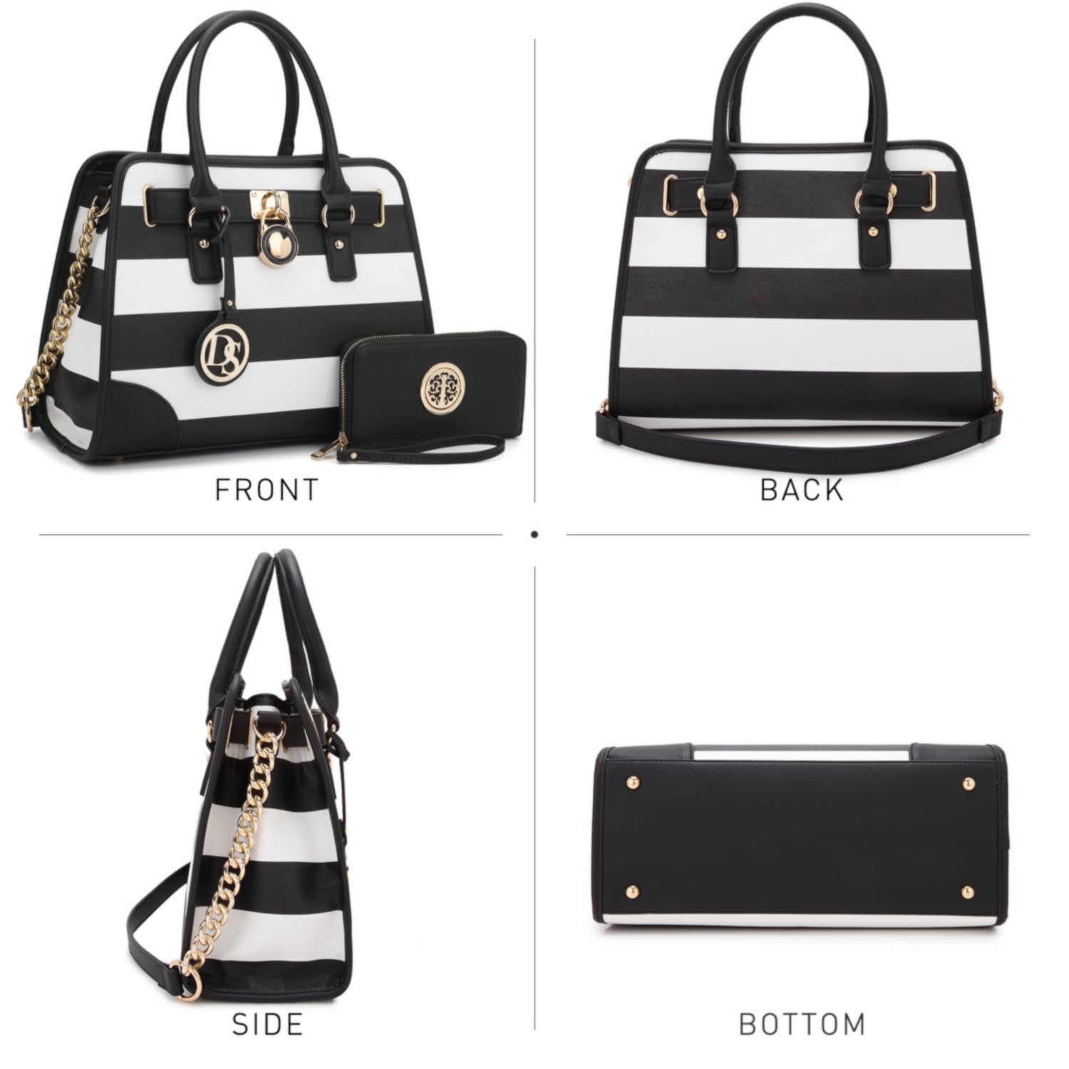 Dasein Women Handbags Top Handle Satchel Purse Shoulder Bag Hobo Bag Work Bag Set 2pcs (Black/White)