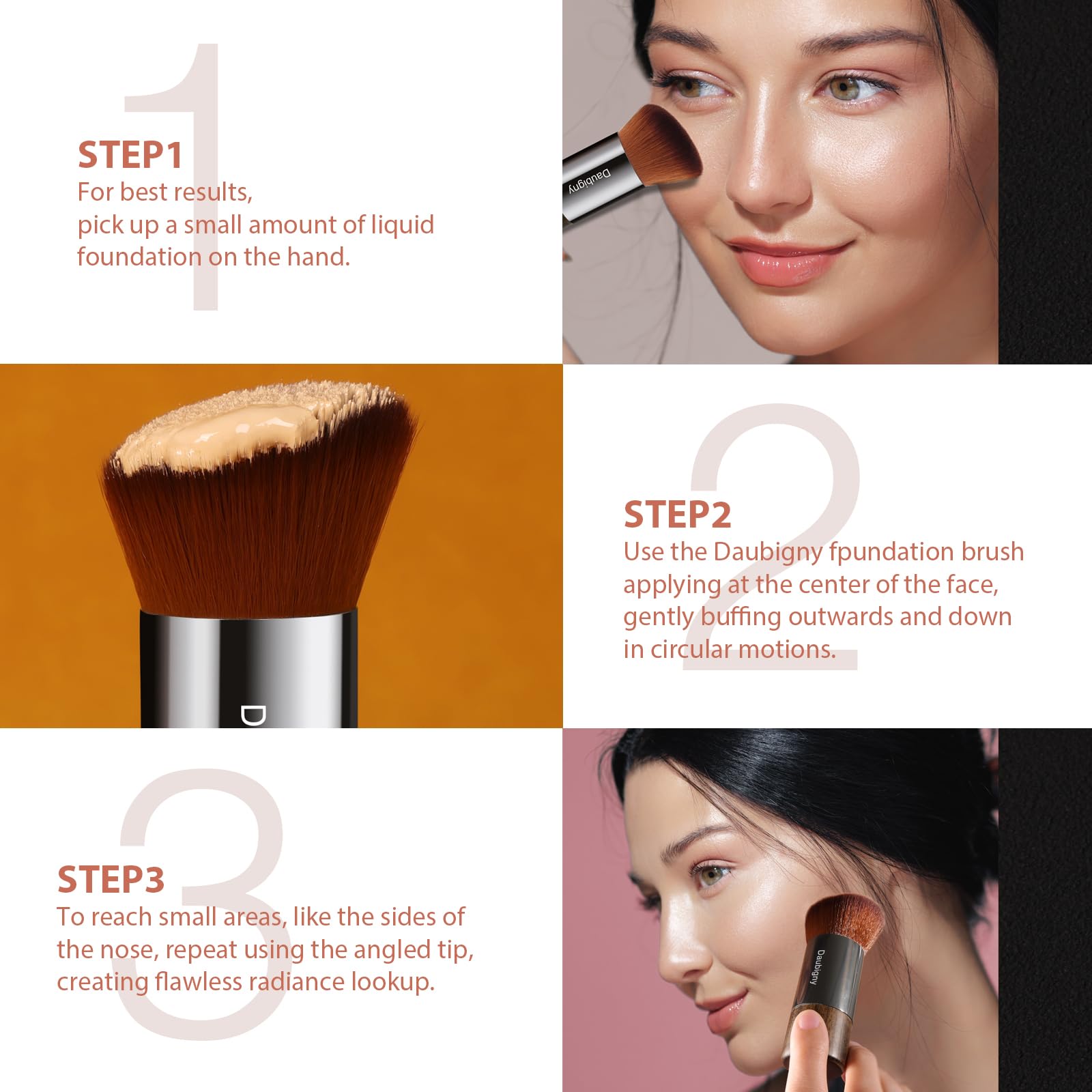 Daubigny Foundation Brush for Liquid Makeup, Self Tanner Brush Flat Top Kabuki Professional Makeup Brushes Blending Mineral Powder Buffing Stippling Makeup Tools