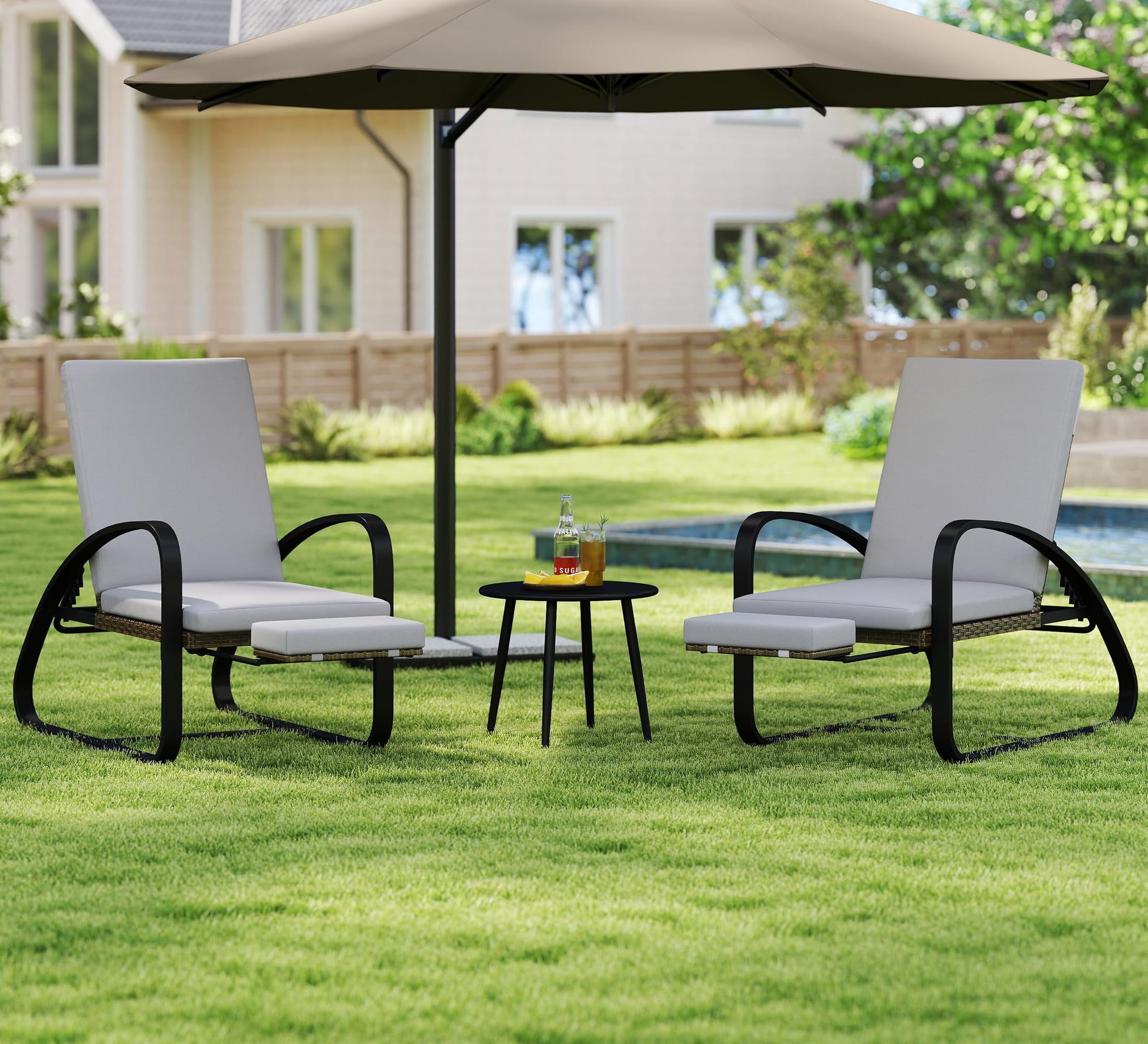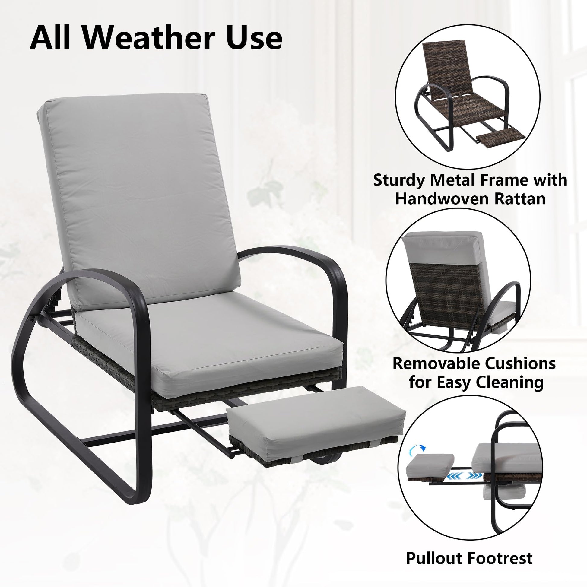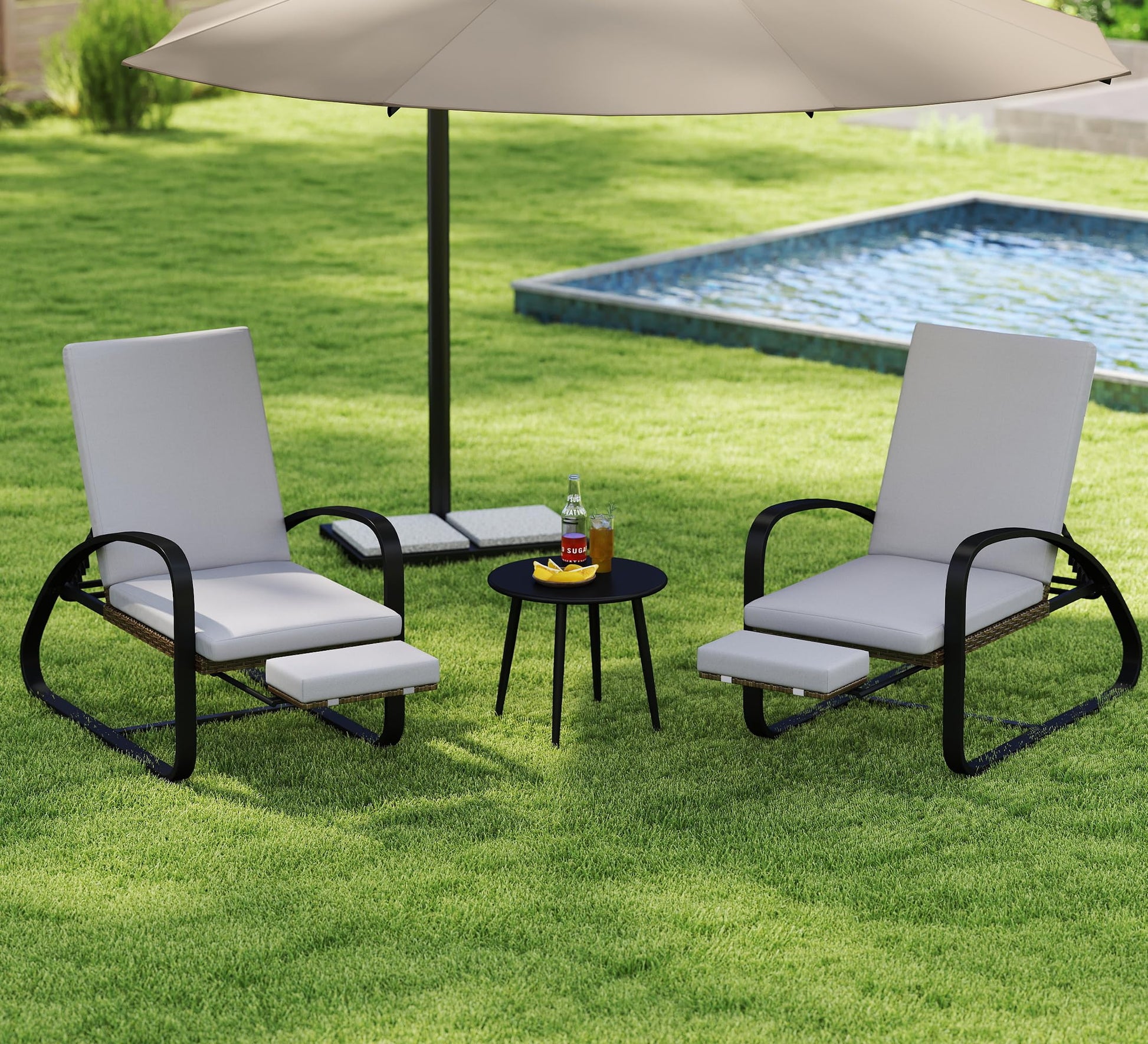 DAYARUS 3 Piece Patio Furniture Set with Pullout Footrest, Adjustable Backrest Patio Conversation Set, Metal Patio Chairs with Coffee Table, Outdoor Furniture Lounge Recliner for Lawn/Balcony, Grey