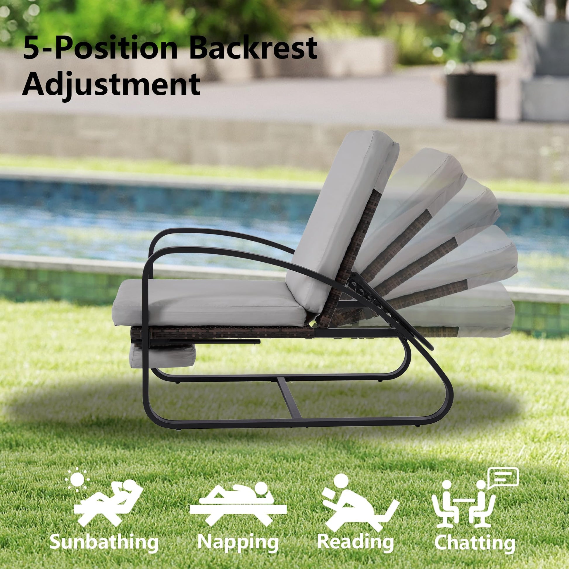 - Adjustable Backrest: This patio furniture set boasts a backrest that can be adjusted to your preferred angle, ensuring the utmost comfort whether you're indulging in a sunny read or chatting with loved ones