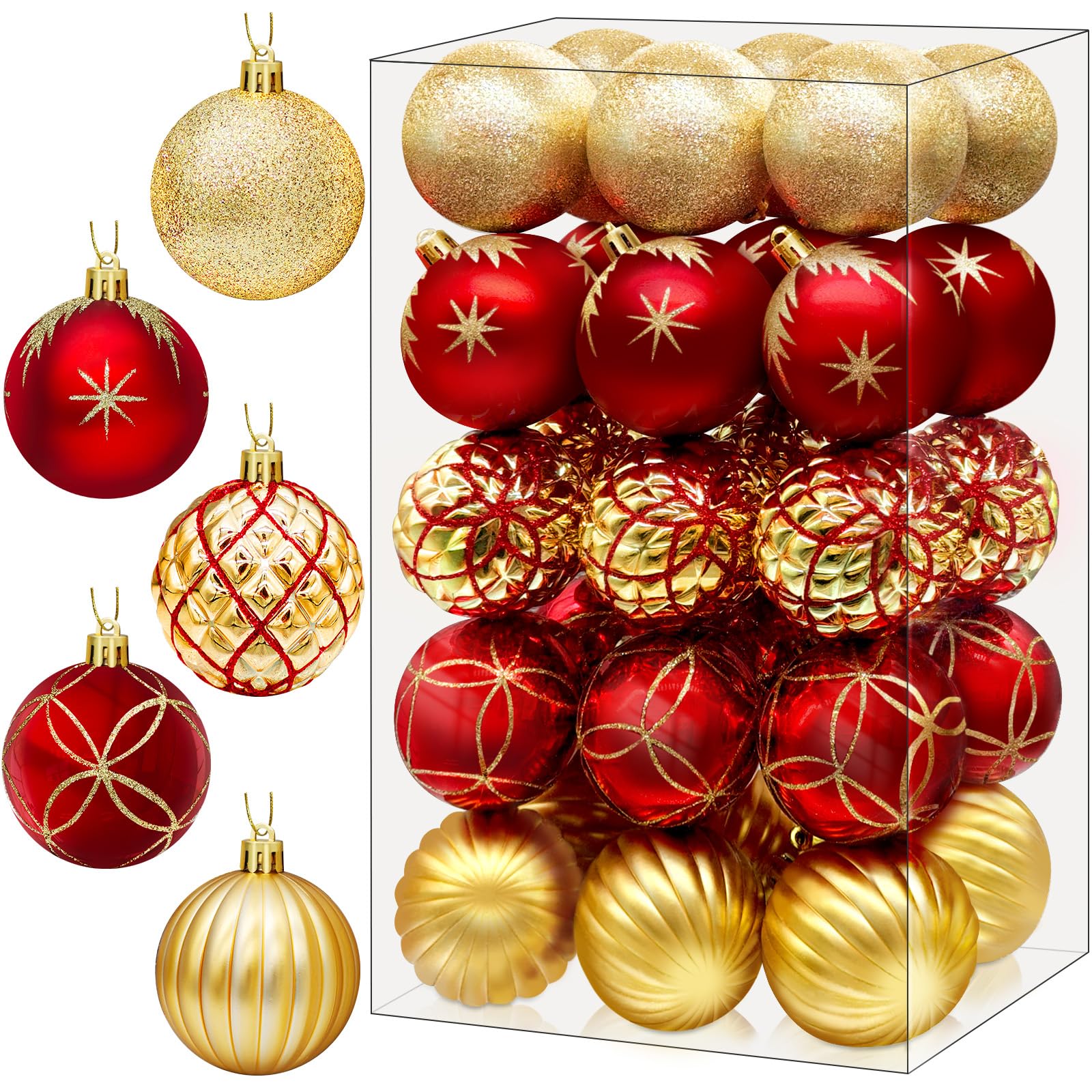 DeckTheHalls Christmas Balls Ornaments, 30 Pcs 2.5 Inch Christmas Tree Decorations for Xmas Tree Hanging, Shatterproof Ball Ornaments for Festival Home Party Decors, (Red & Gold)