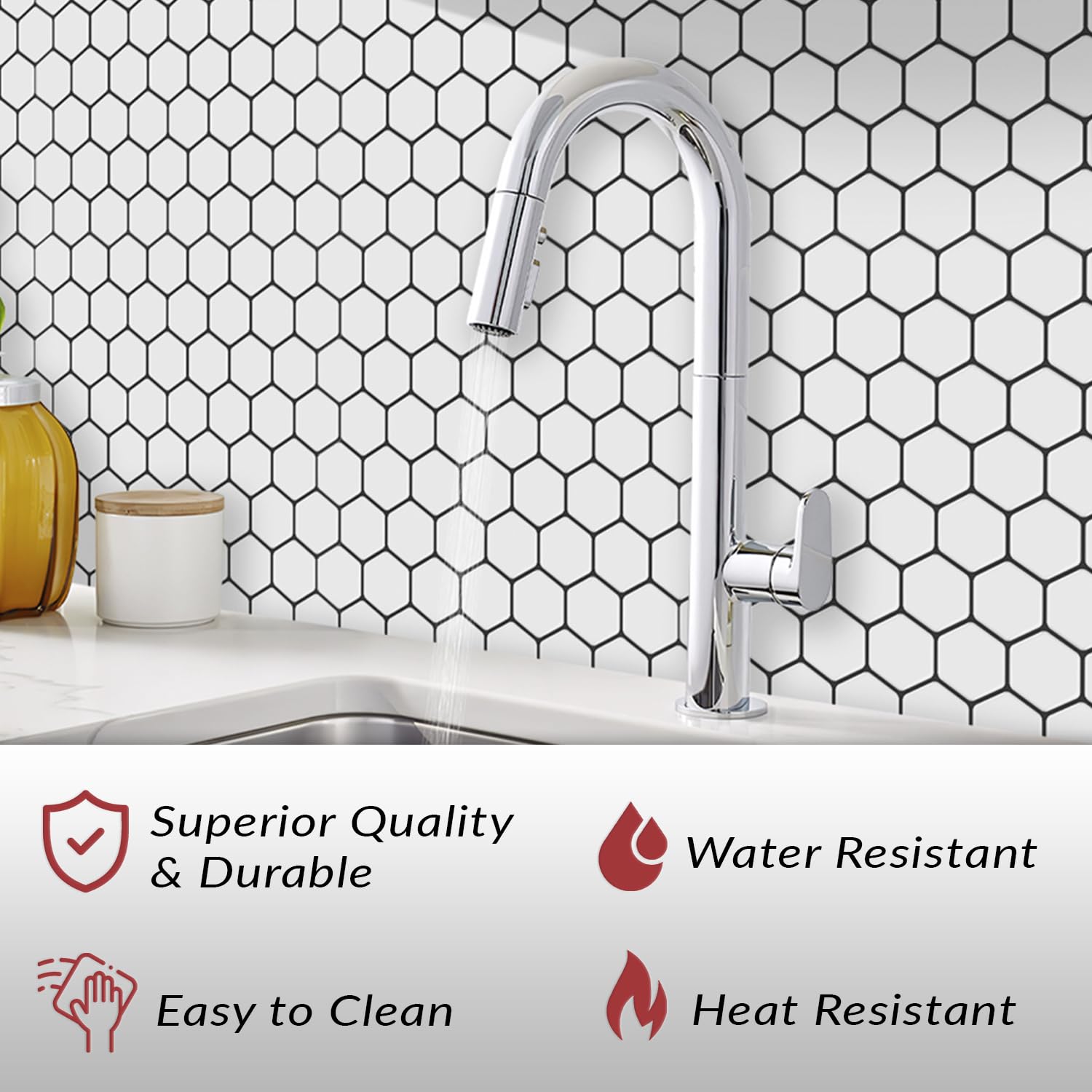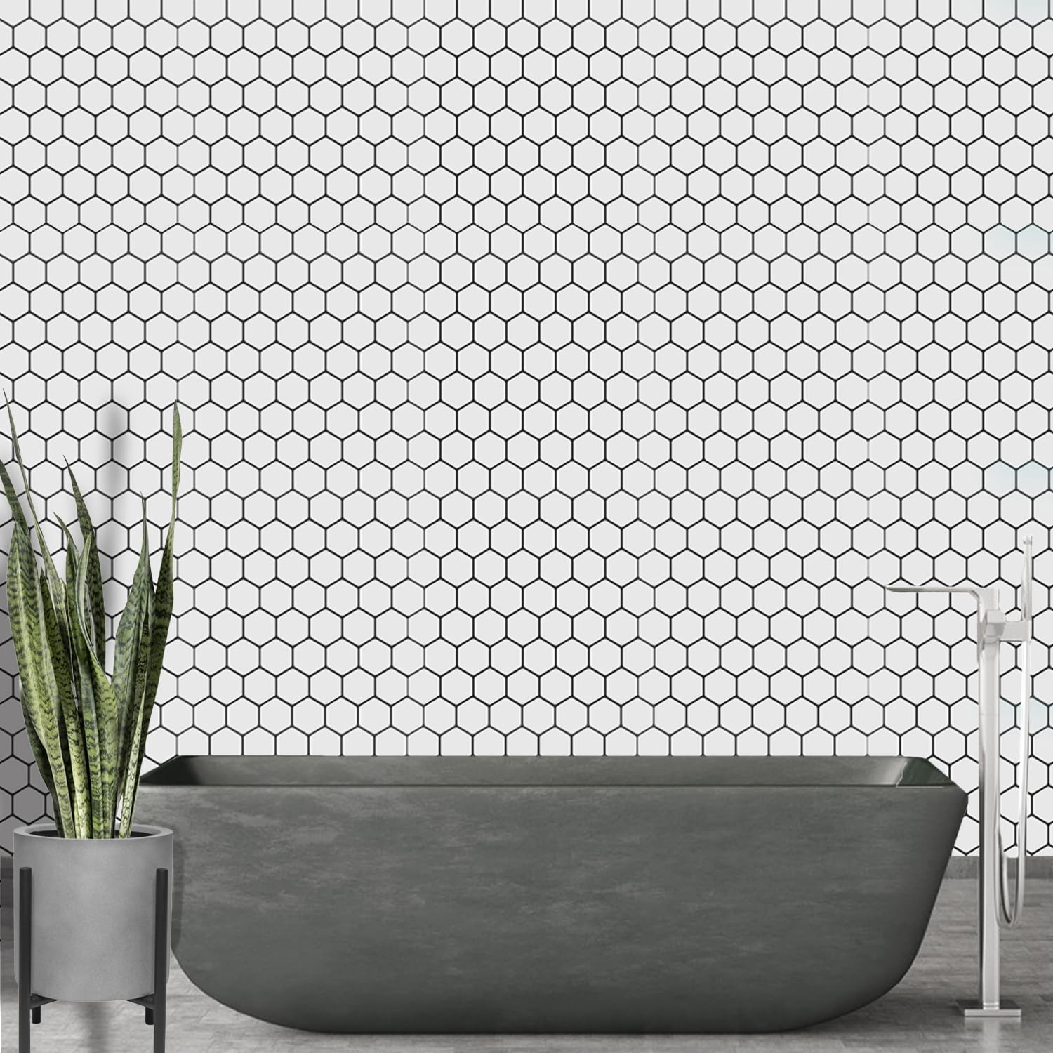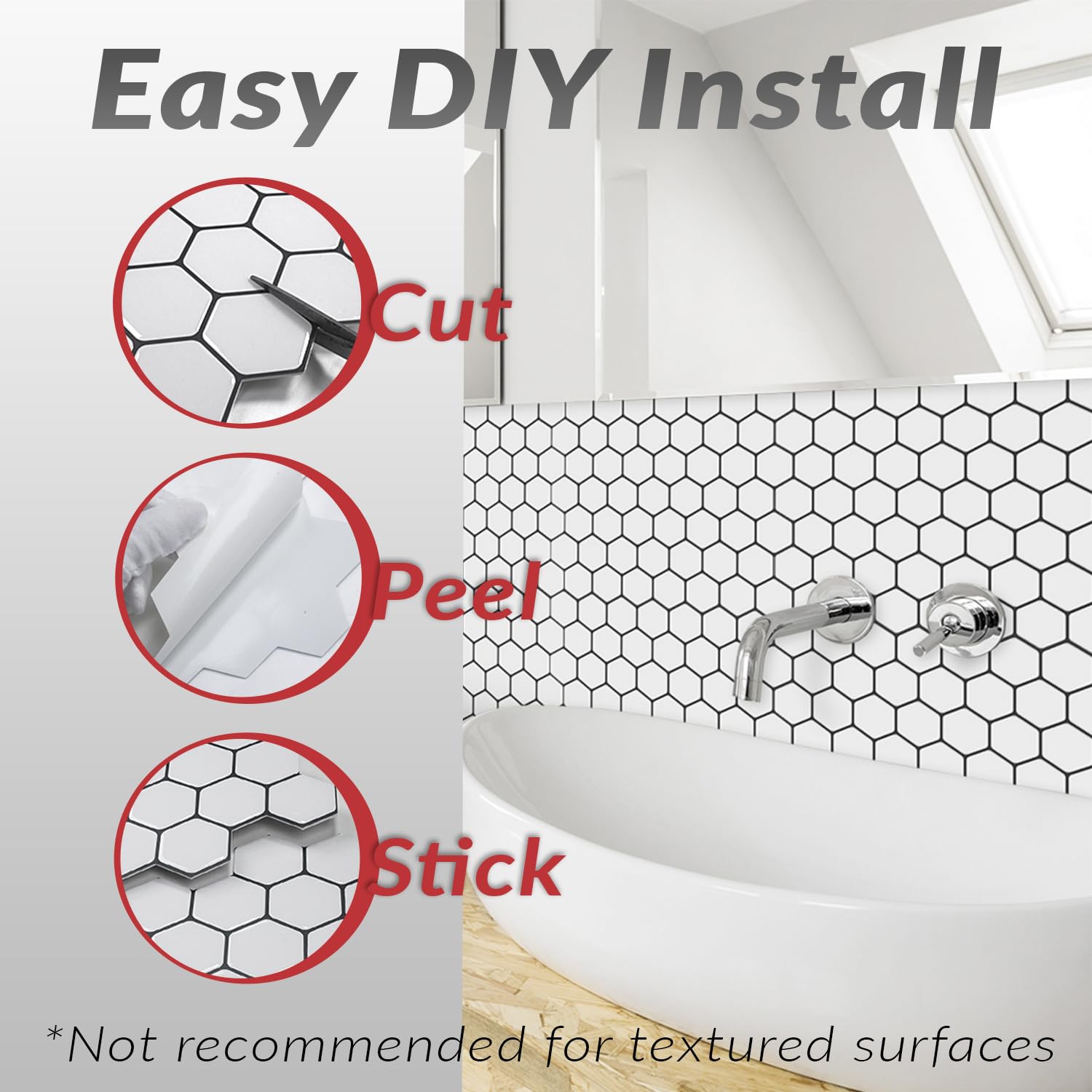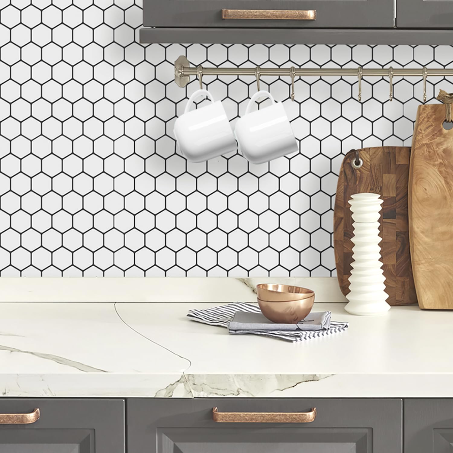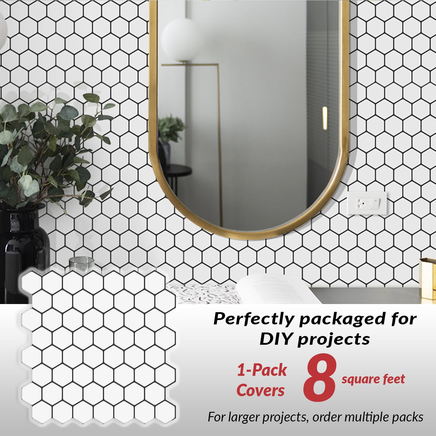 DÉCOR WOW Peel & Stick Backsplash for Kitchen & Bathroom, (8) 12x12-inch Sheets Covers 8 Sq. Ft, White Hexagon