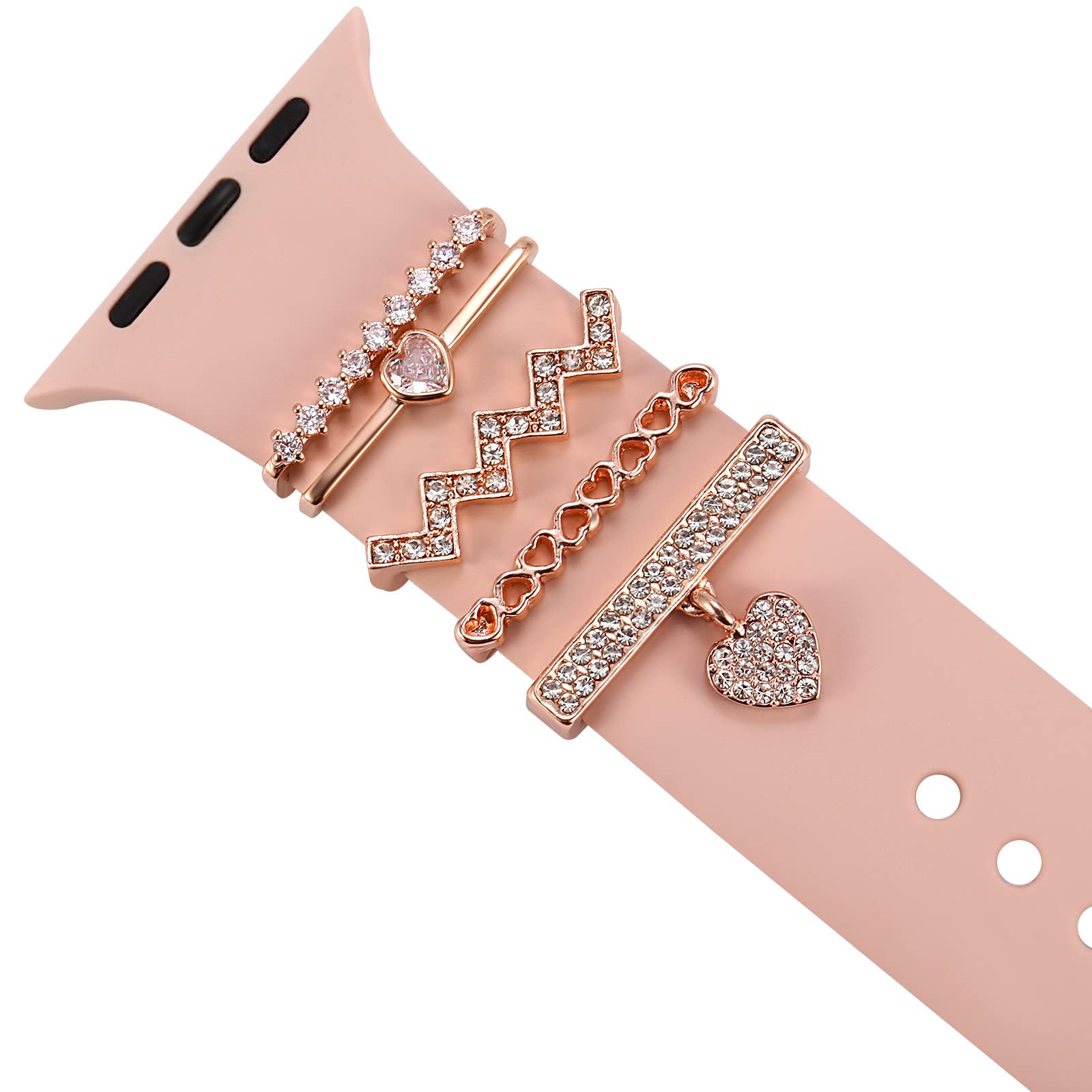 Decorative Heart Rings Loops Compatible with Apple Watch Silicone Bands Charms 45mm 44mm 42mm 41mm 40mm 38mm 7 6 5 4 3 2 1 Diamond Love metal Charms Slide Accessories for iwatch Series 7 6 5 4 3 2 1