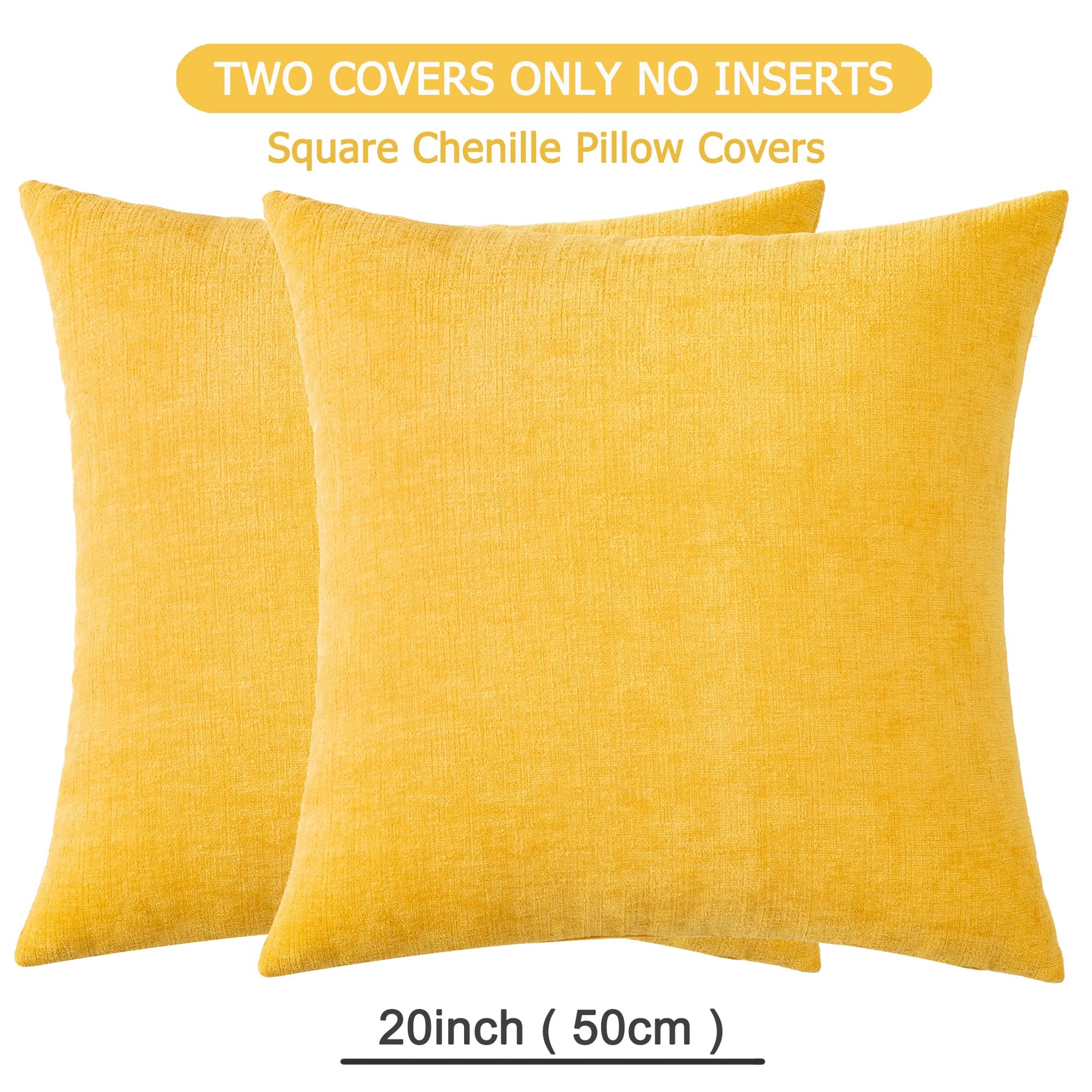 Decorative Square Throw Pillow Covers 20x20 Inch set of 2, Super Soft Chenille Farmhouse Pillowcase for Living Room Bedroom Sofa Couch Cushion Cover Gold Yellow 50x50cm/20x20 Inch