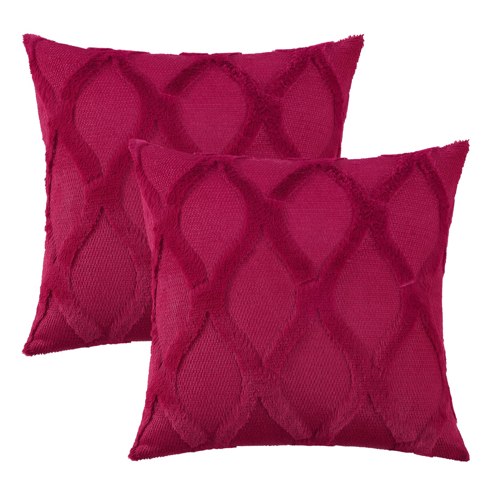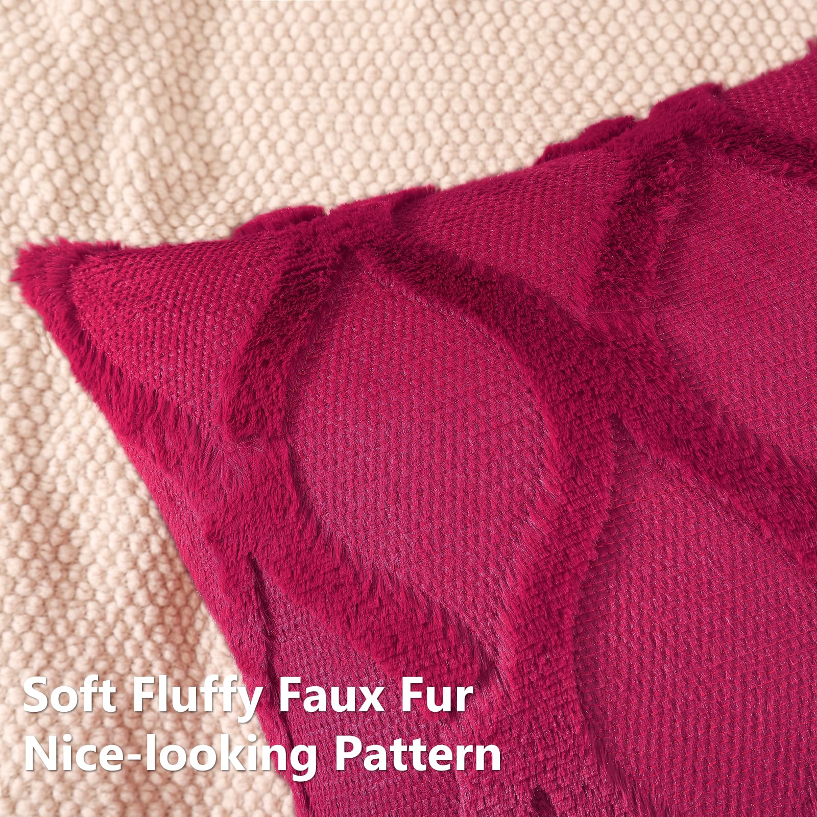 decorUhome Throw Pillow Covers 18x18 Inch Set of 2, Soft Plush Faux Fur Wool Burgundy Couch Pillow Covers, Decorative Neutral Pillow Cases for Bed Sofa Living Room Home Decor
