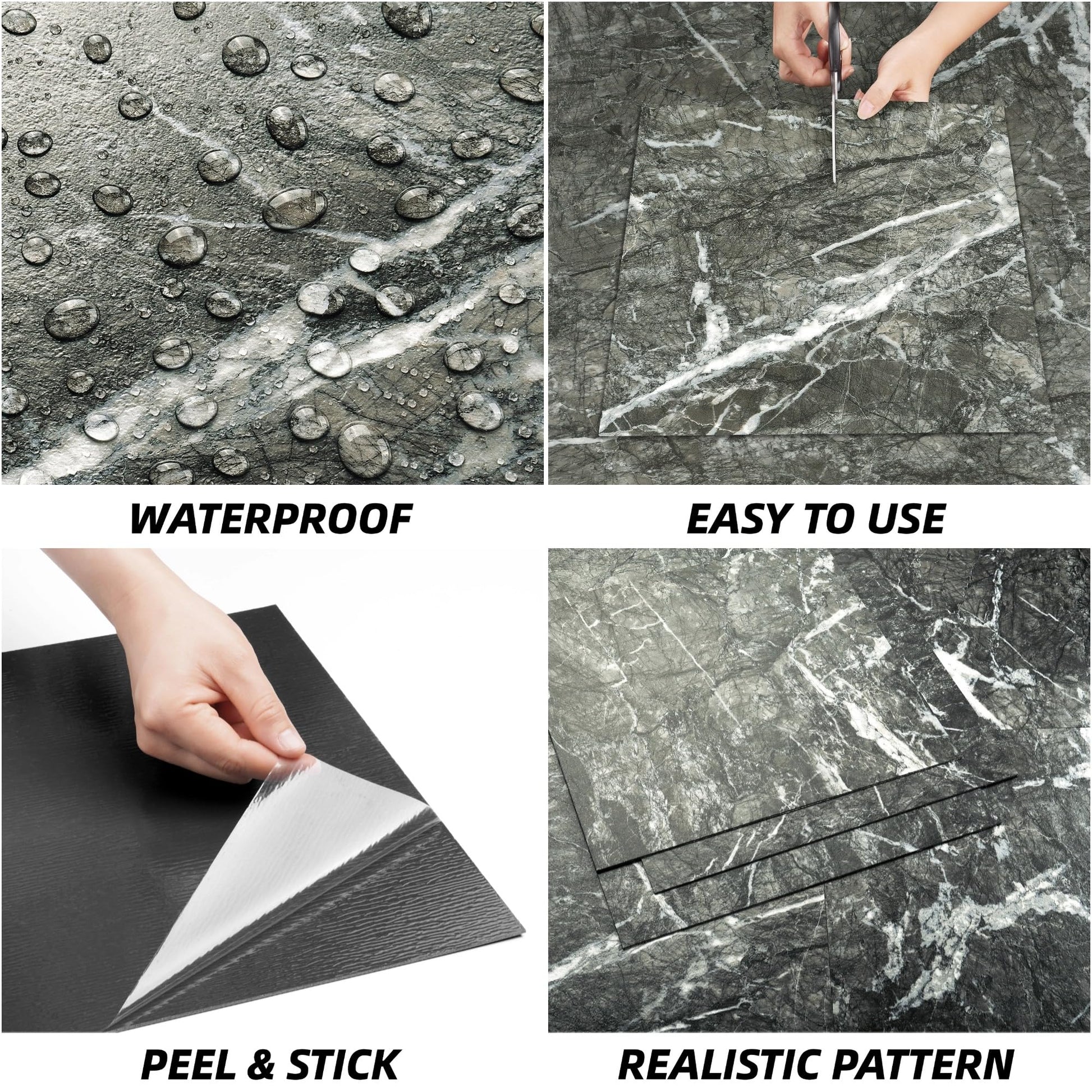 - 🏡 ️ -【Easy to Use】:Grey vinyl flooring is nice for new users and super easy to operate! Just peel the back film and stick it to the surface you want. no grout, no glue, and removable. Easy to cut with sharp utility knife or scissors.