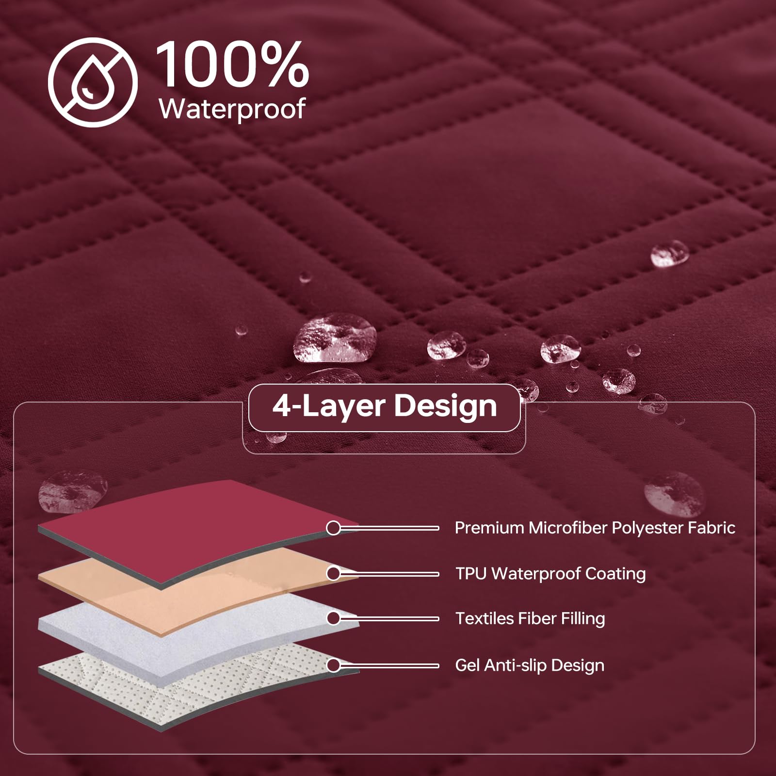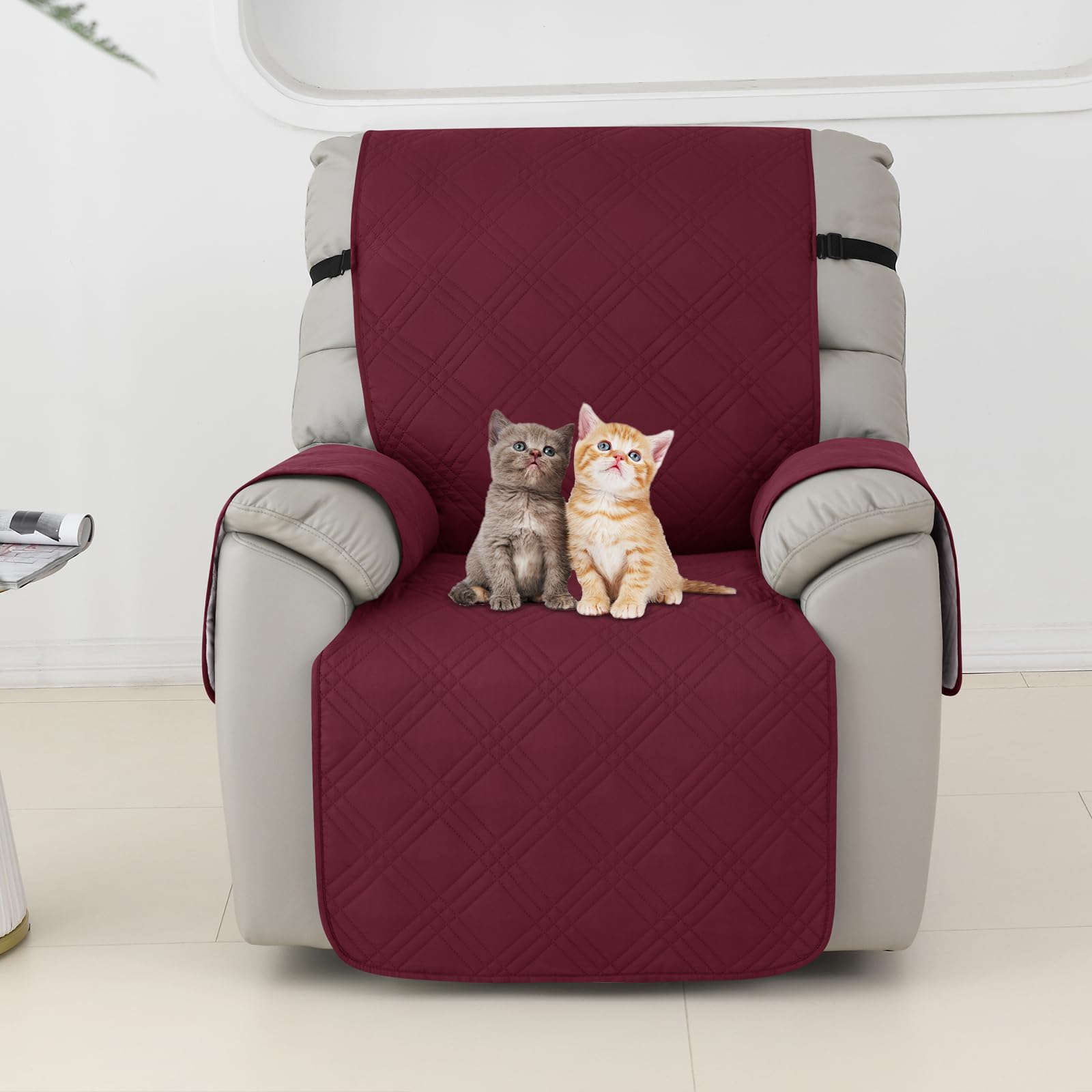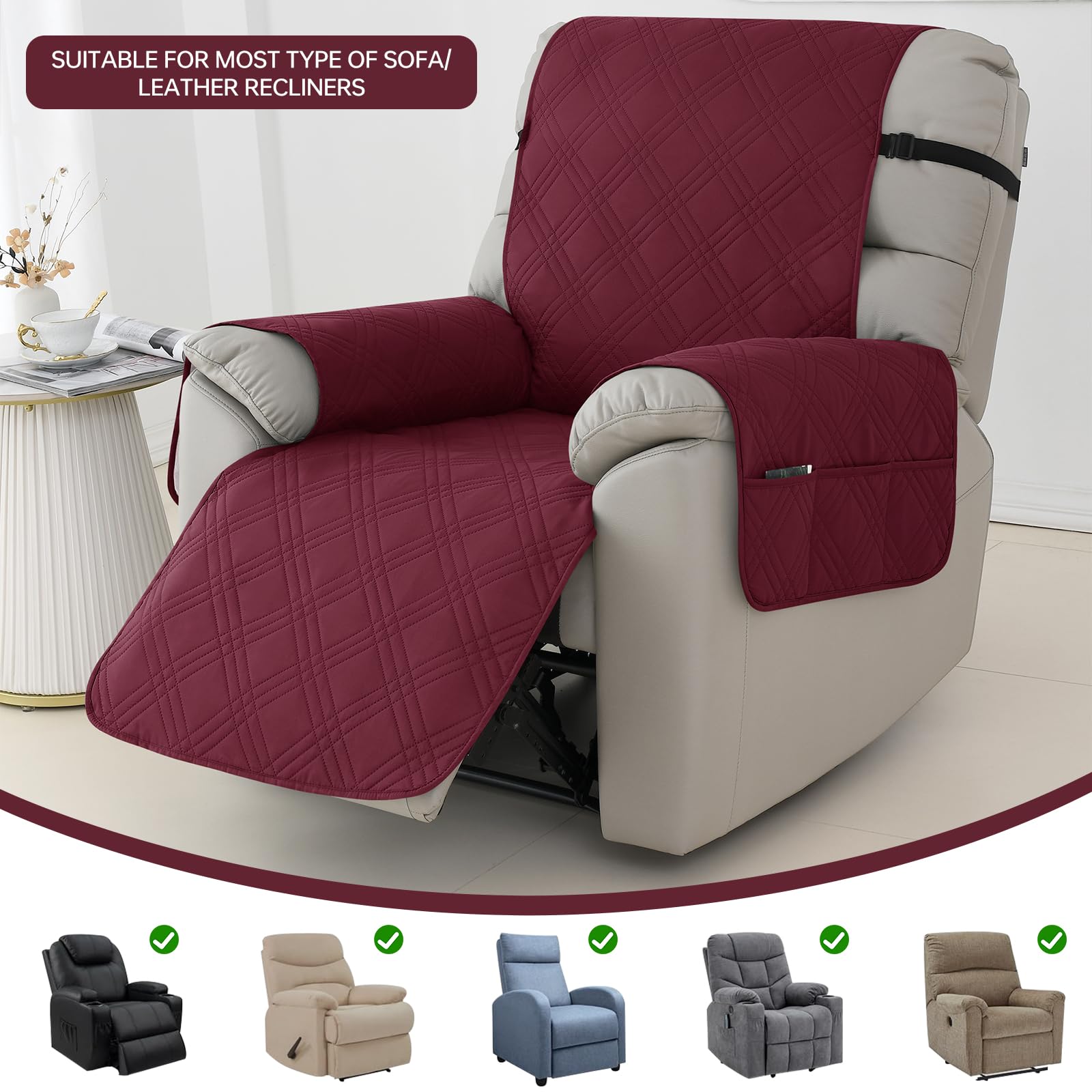 Deisy Dee Waterproof Recliner Chair Covers with Storage Pocket - Extend Sofa Life, Comfortable & Washable, Available in 10 Colors (Burgandy, 24.8 ")