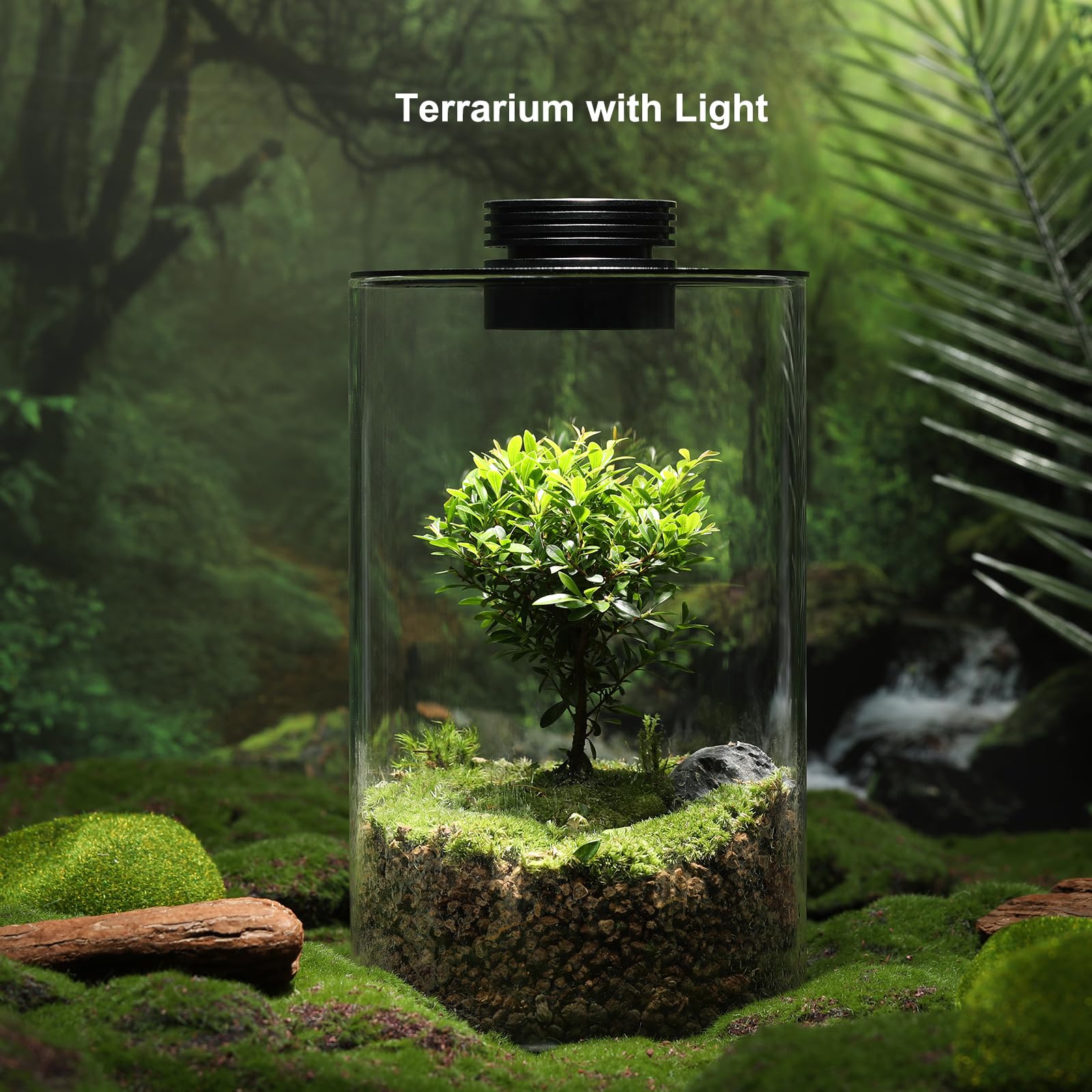 Desktop Glass Plant Terrarium with Grow Light (H:9.8" D:5.9"), for Succulent, Moss, Miniature Gardening Landscape, Betta Fish Tank, Indoor Plant Growth, Office Home Decoration, Plant Lovers Gifts