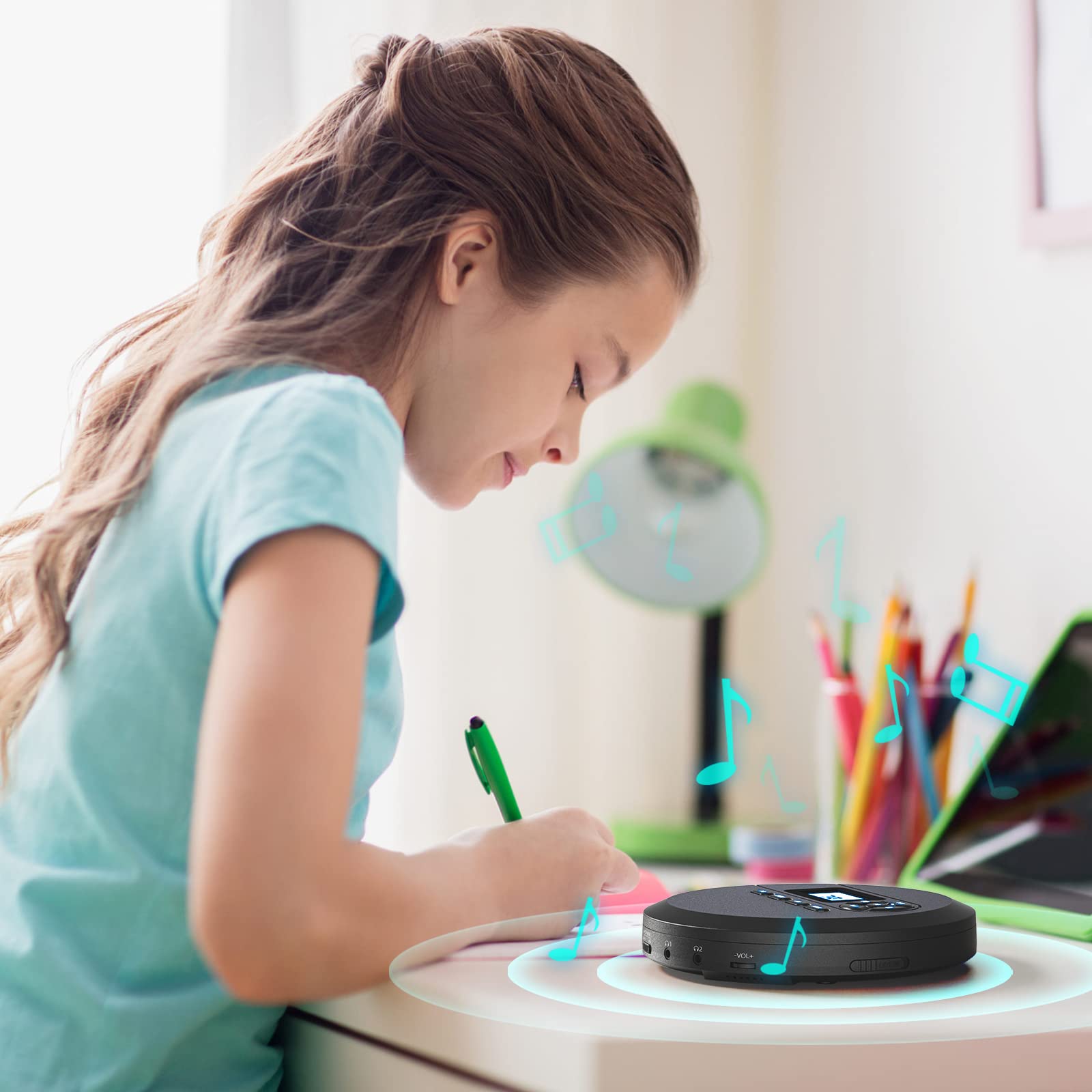 - 【CD Player with Speakers】This small CD player is designed with dual speakers. When you listen the music or audio books at home, you do not need to use the earphones. It also has two earphones jacks and them can used together. If you are outside, you can share the music with other easily.