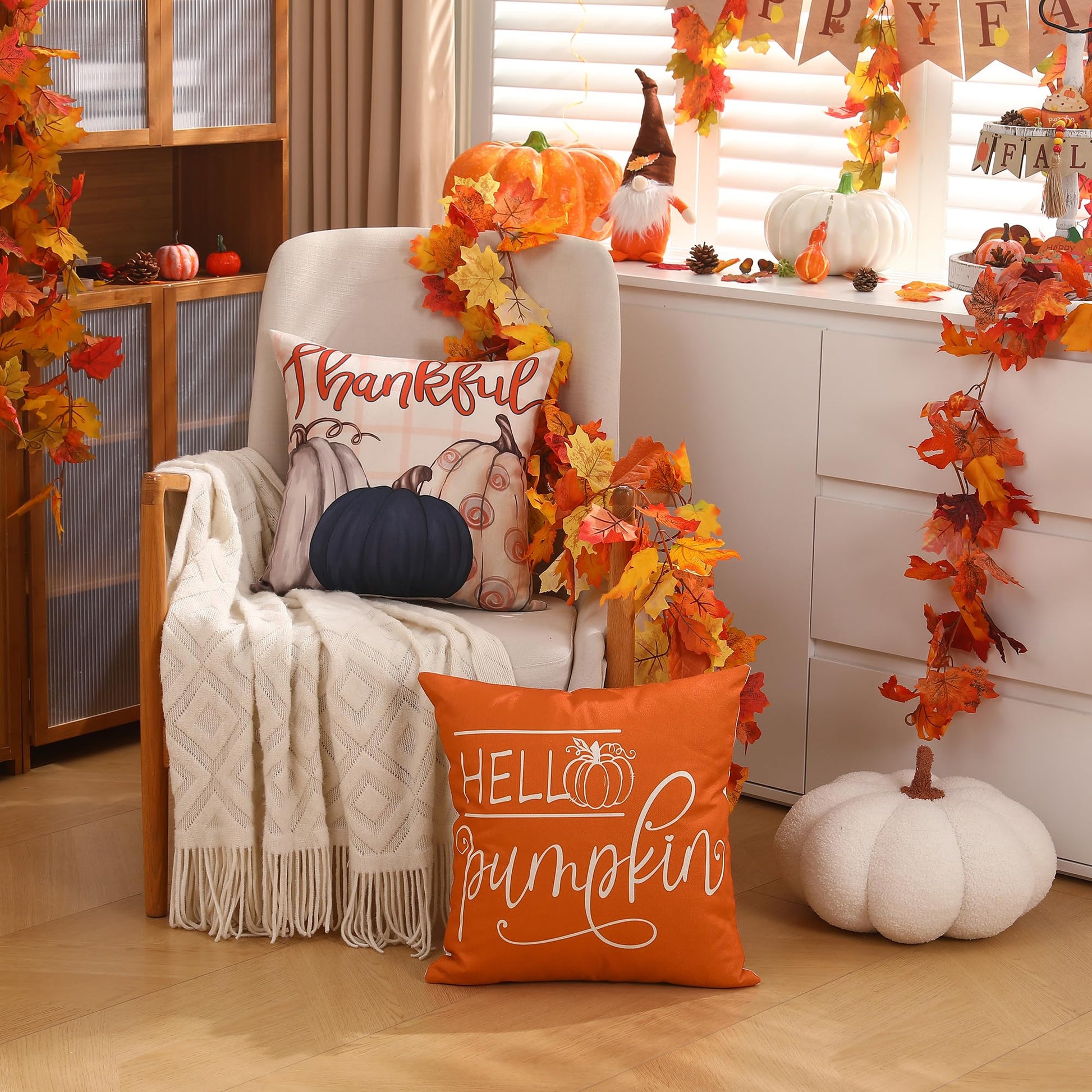 DFXSZ Fall Pillow Covers 18x18 inch Set of 4 Buffalo Plaid Fall Blue Pumpkin Throw Pillow Cover Autumn Thanksgiving Decoration for Home Couch Bed