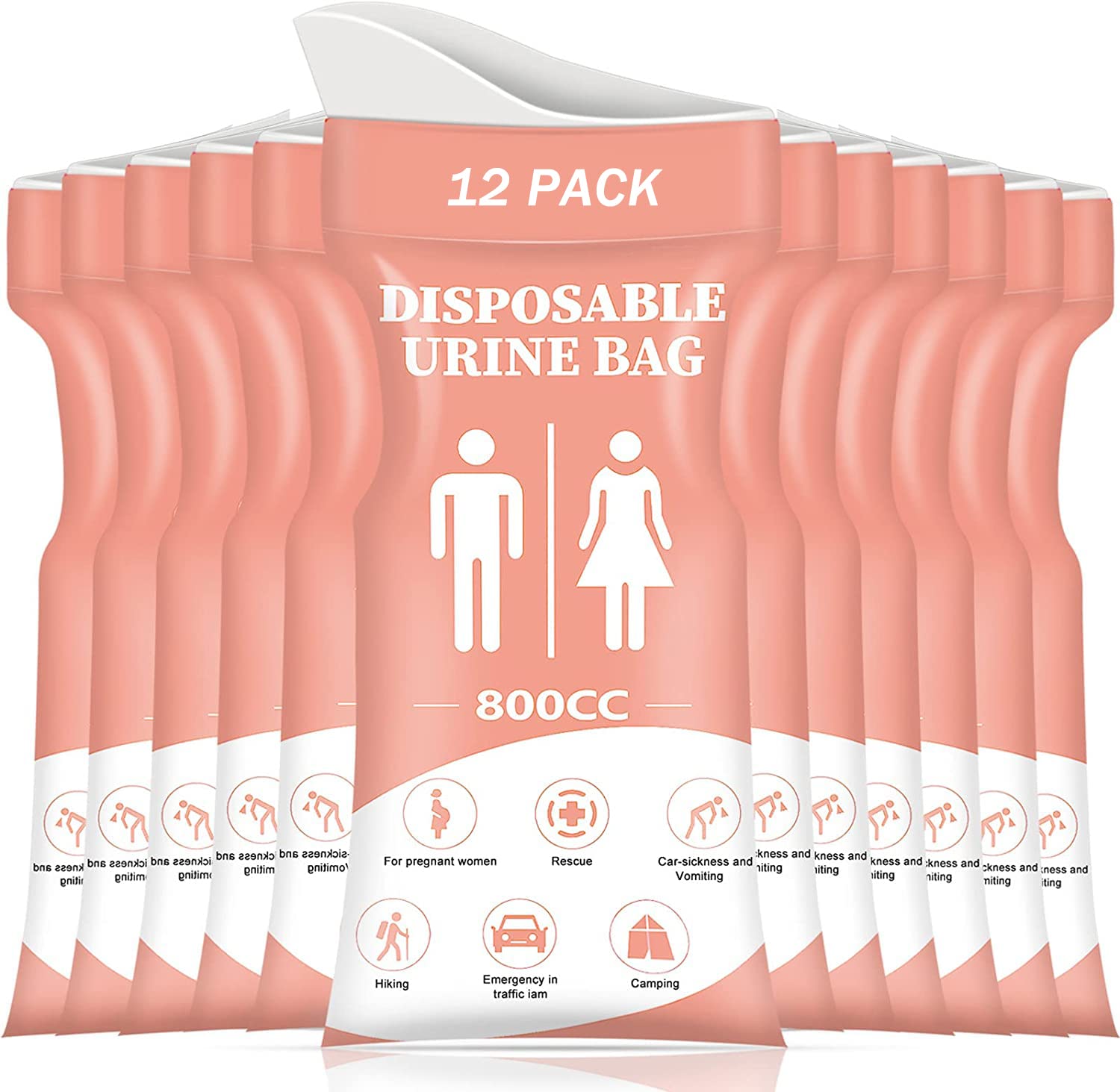 DIBBATU Disposable Urine Bag, 12/24 PCS Pee Bags for Travel for Women/Men, 800ML Emergency Portable Urinal Bag and Vomit Bags, Unisex Urinal Bag for Camping, Traffic Jams, Pregnant, Patient, Kids
