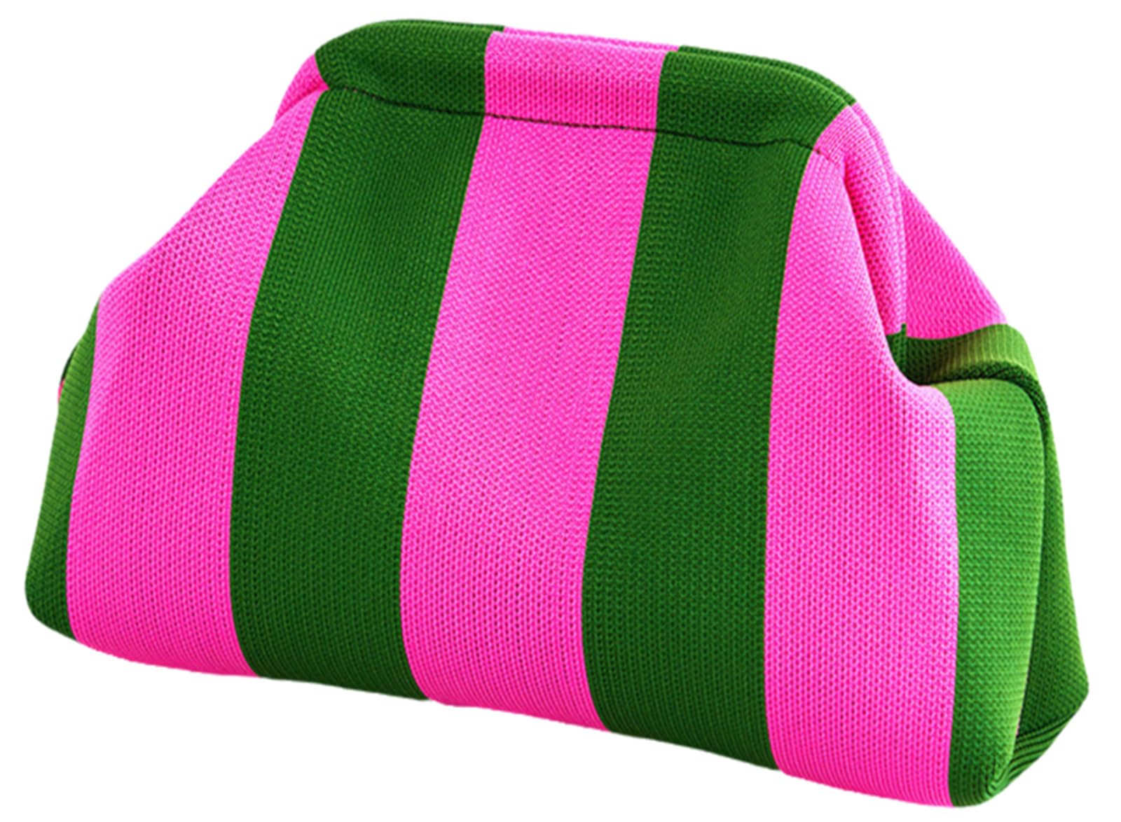 DIHKLCIO Clutch Purses for Women Summer Beach Woven Crochet Handbag Dumpling Striped Ruched Cloud Purse colorblock Evening Bag pink green