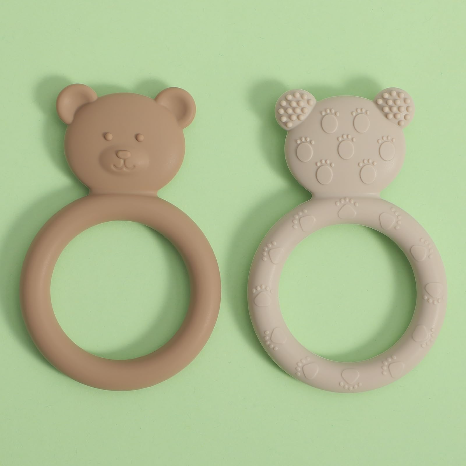 Dirbabi Silicone Baby Teether, Teething Toy Ring for Babies, Easy to Hold Design, BPA Free (Sand + Light Grey)