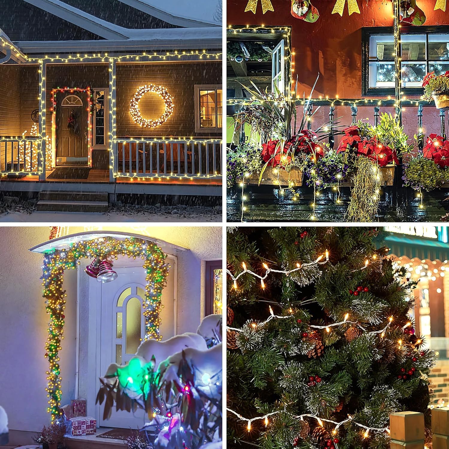 - IP44 Waterproof for Outdoor & Indoor Use: All of our christmas lights are constructed with high quality material and designed to withstand rain or snowstorm, so you can confidently leave them on display through summers and winters. Perfect for indoor & outdoor decoration. Lights can be utilized both indoor and outdoor without worry of rainy weather, the high quality wire can keep the lights for long time use.(Please be attention: please keep the plug away from water.)