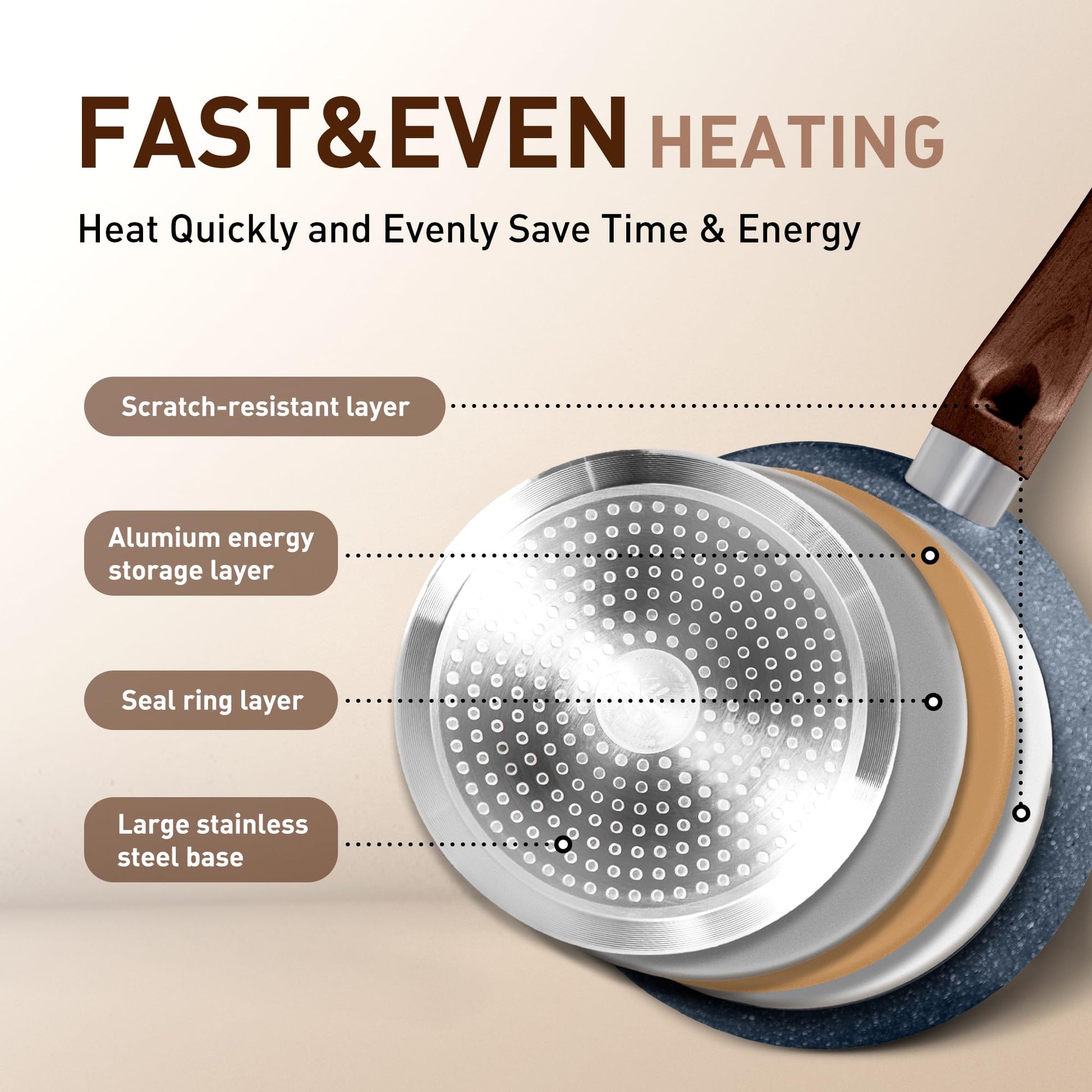 - ๐๐ก๐จ๐ฎ๐ ๐ก๐ญ๐๐ฎ๐ฅ ๐๐๐ฌ๐ข๐ ๐ง ๐๐จ๐ซ ๐๐ซ๐๐๐ญ๐ข๐๐๐ฅ๐ข๐ญ๐ฒ: Anti-scald handles keep your hands safe, while the deeper pan shape allows for versatile cooking techniques, from stir-frying to simmering. Versatile cookware set for various cooking methods