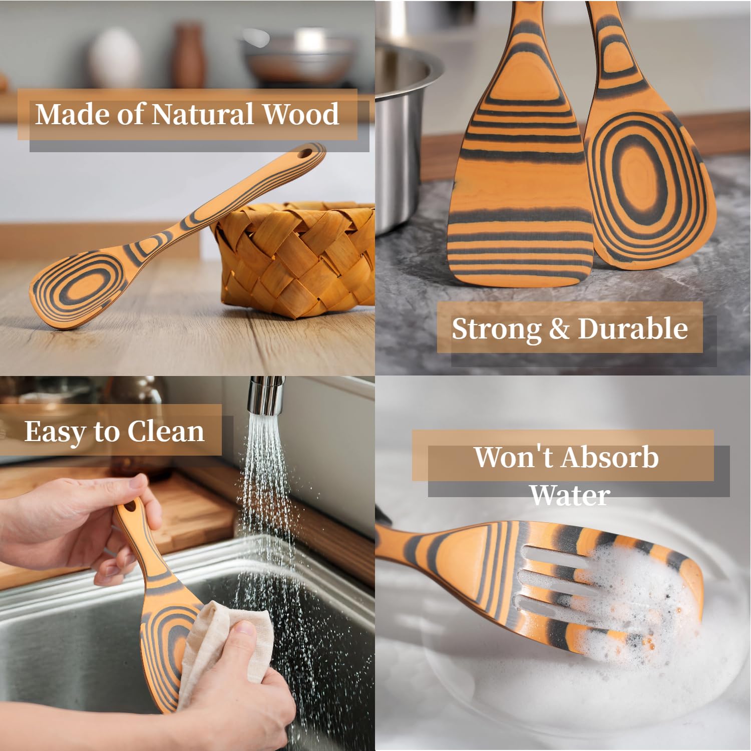 - 『🌲Maintenance Free & Versatile Usage』 *No oiling, no seasoning, no fuss!* They add a unique and stylish touch to your home and kitchen with the modern look, you can use these utensils for high heat sauteing, baking, mixing, flipping, and of course serving.