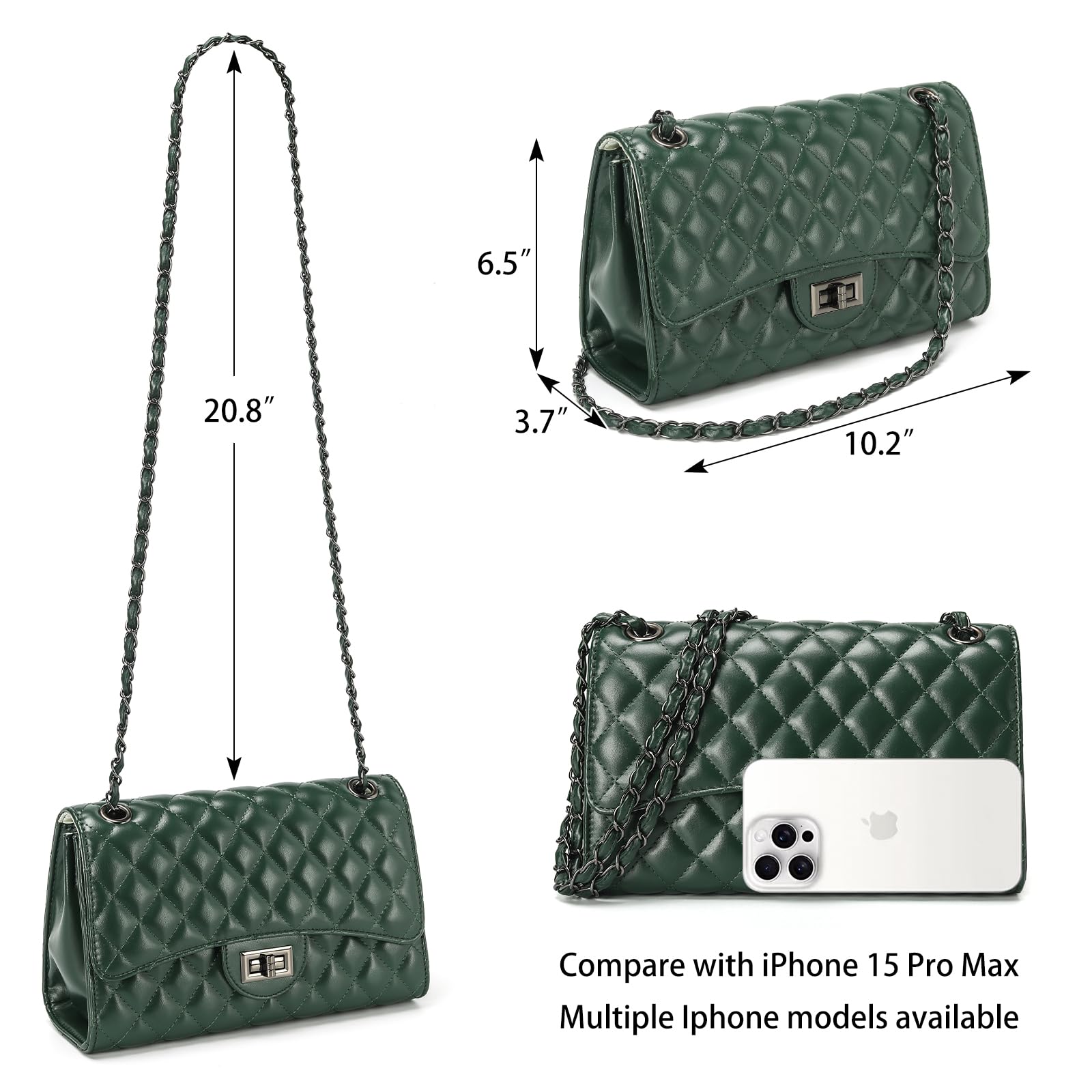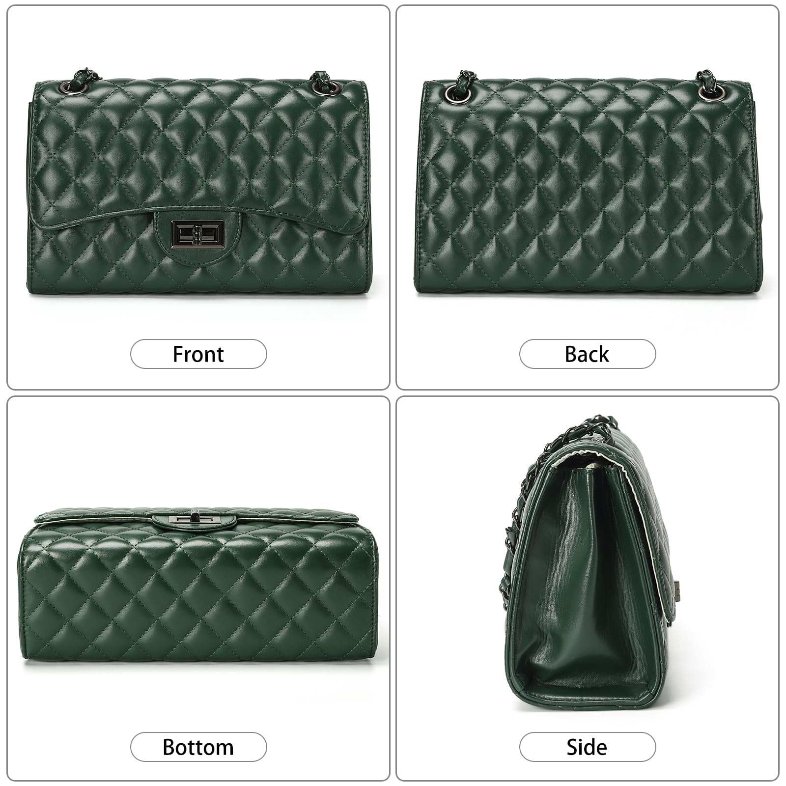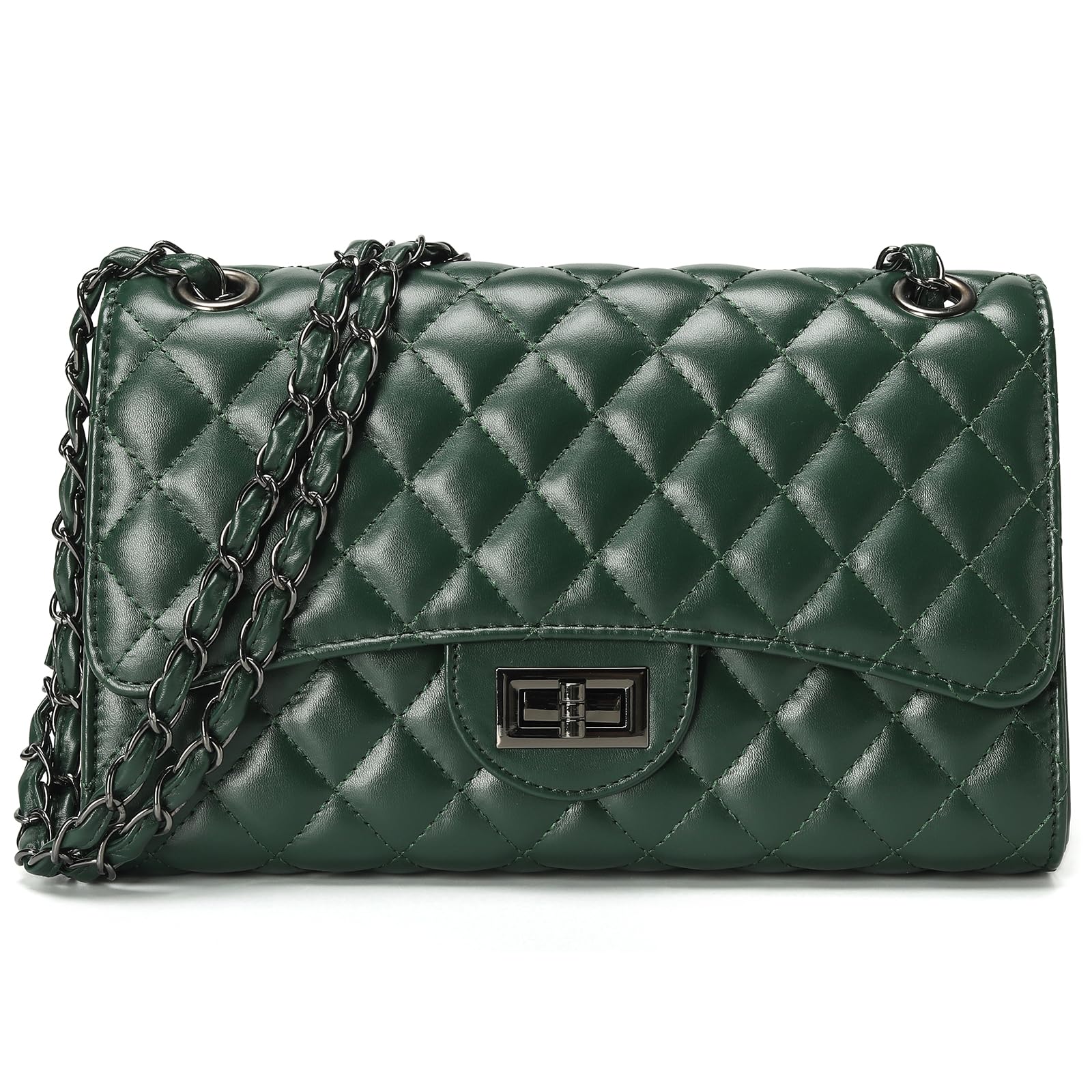 - STYLISH & FUNCTIONAL-This trendy crossbody purse features a classic quilted exterior design with soft vegan leather, adjustable leather chain strap and front flap with twist lock closure. Great for daily use for work or chic enough for going out to a party or other occasion.