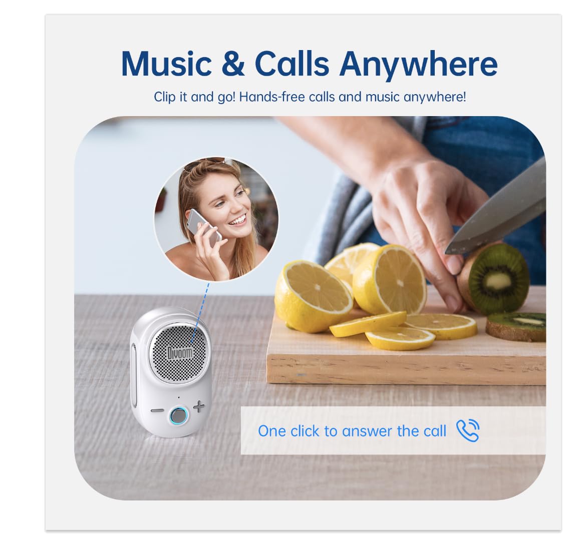 - 【Your Mini Speaker, Always Within Reach】 Clip the mini speaker to your bike when cycling, clip it to the dog leash when walking with your dog, and clip it to your apron when cooking. NIndoors or outdoors, Itour-S keeps your hands free and your favorite music or audiobooks always close by.