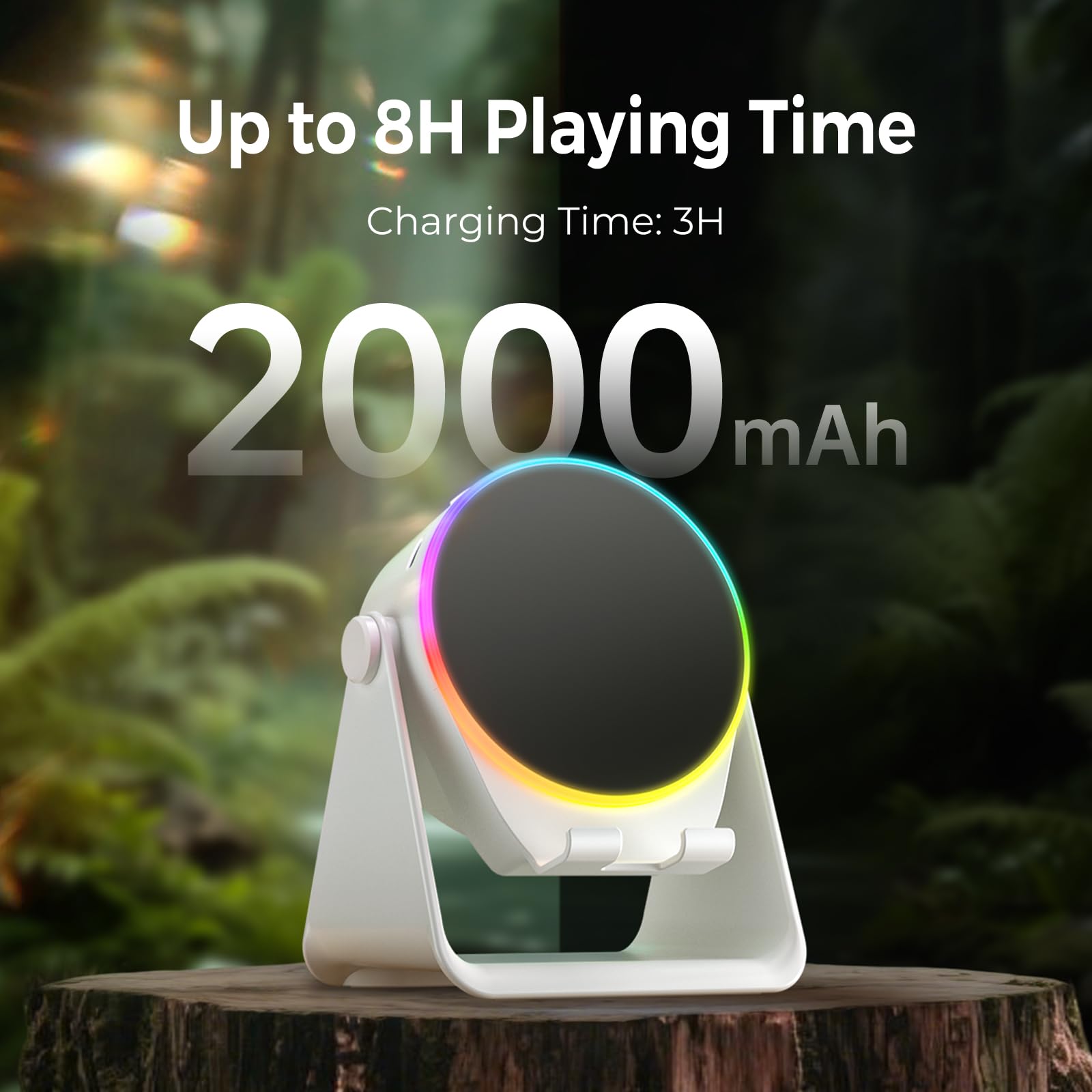 - Color Changing Ambient Light - This cellphone stand adopted dynamic color changing led lights around the round speaker, which add romantic atmosphere when you turn it on. This feature creates a calming and modern vibe for bedrooms, dorms or camping tent