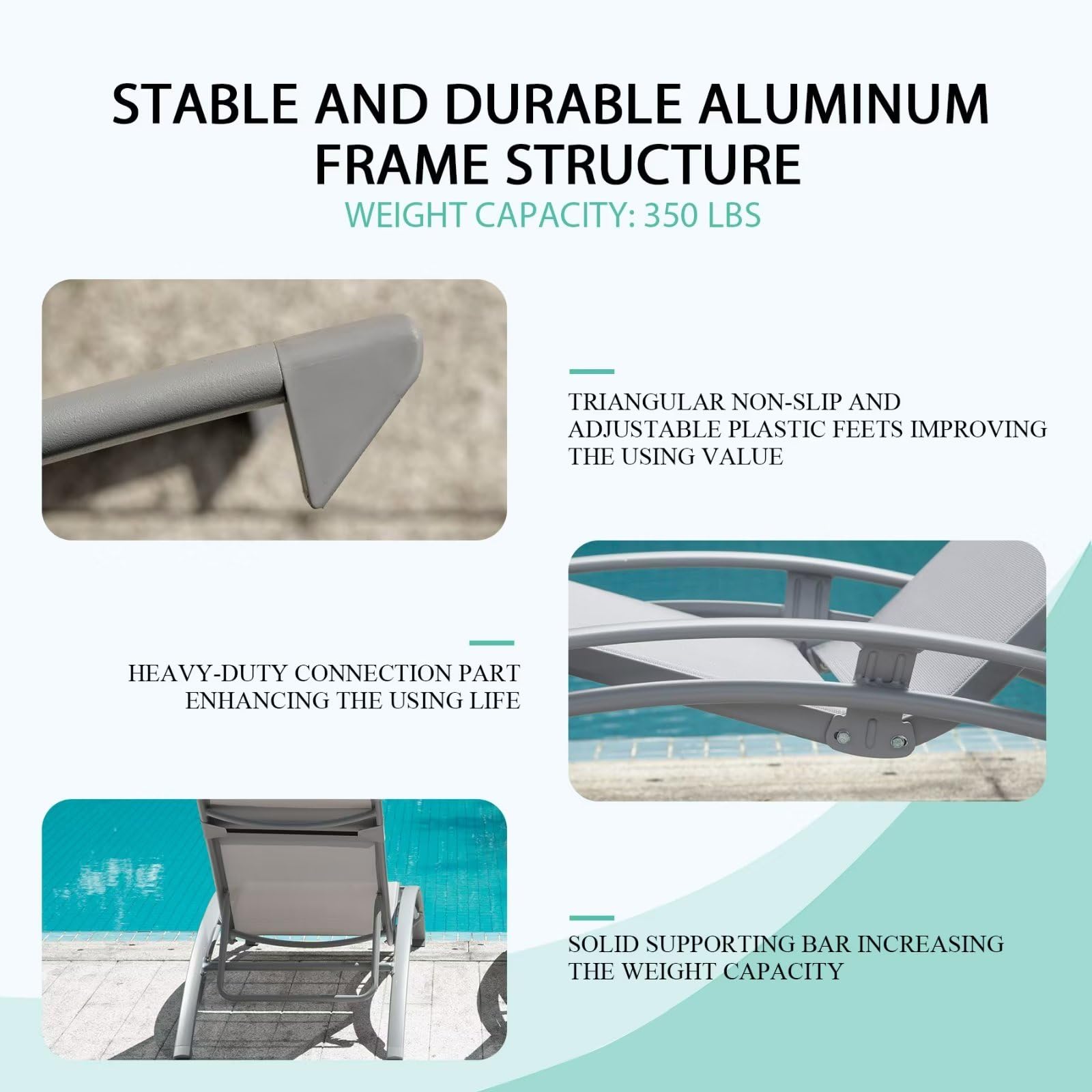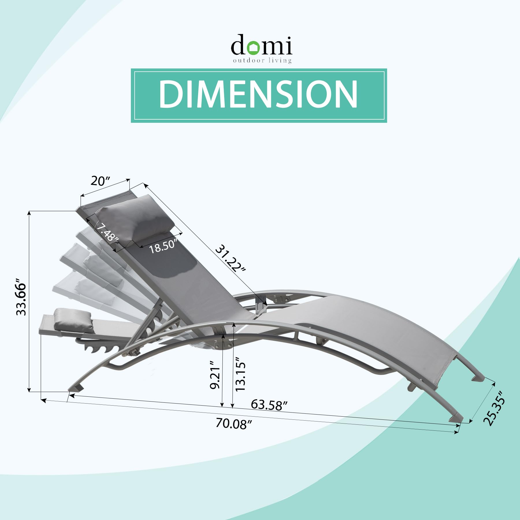 - [Durable Aluminum Frame] Domi outdoor chaise lounge is constructed with weather-resistant powder-coated finish aluminum frame, which is rust-proof and sturdy. It can support with max weight 350lbs.