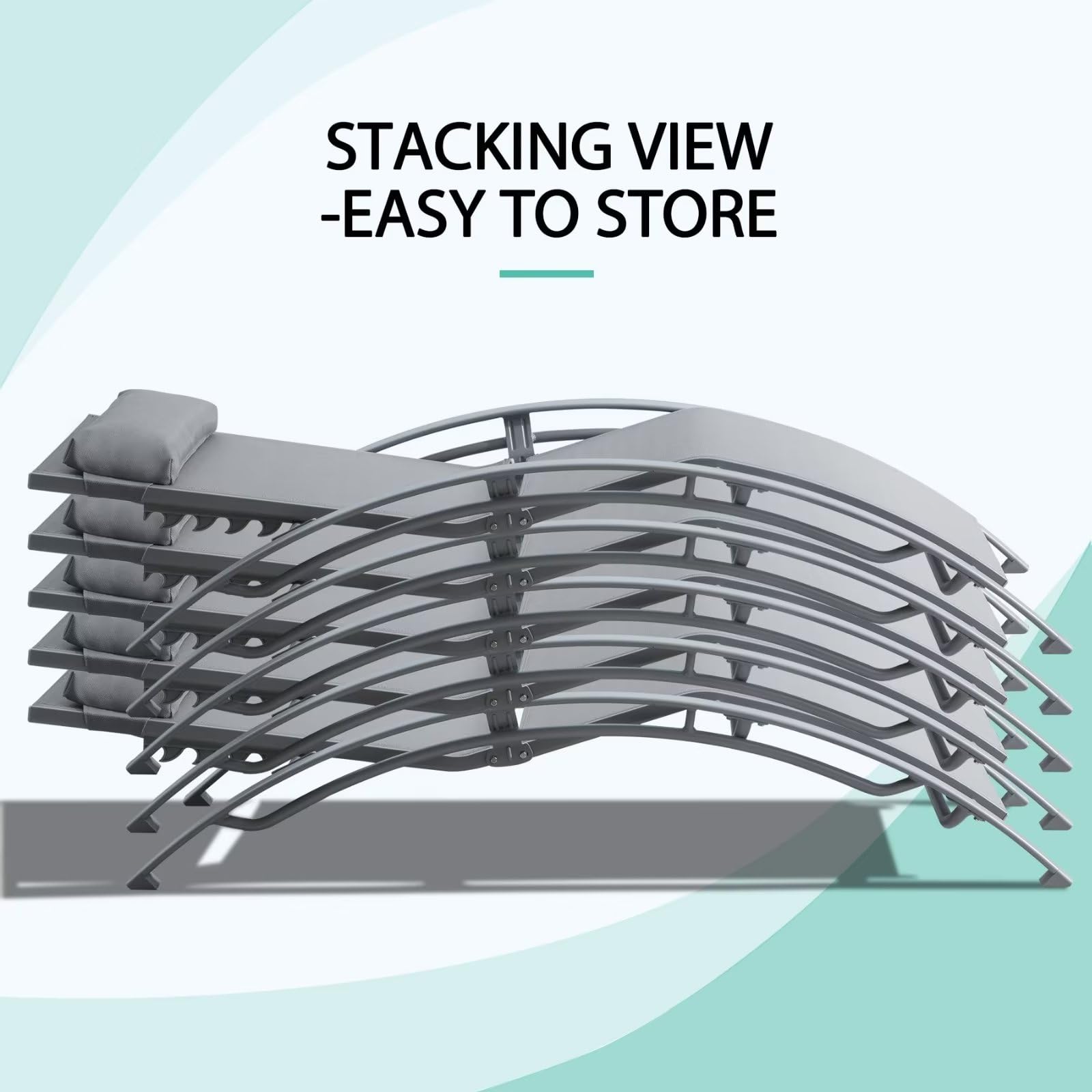- [Low Maintenance] The sturdy aluminum chaise lounge chair can be stacked for easy storage,cleaning and moving, not easy to be bend or deformed.