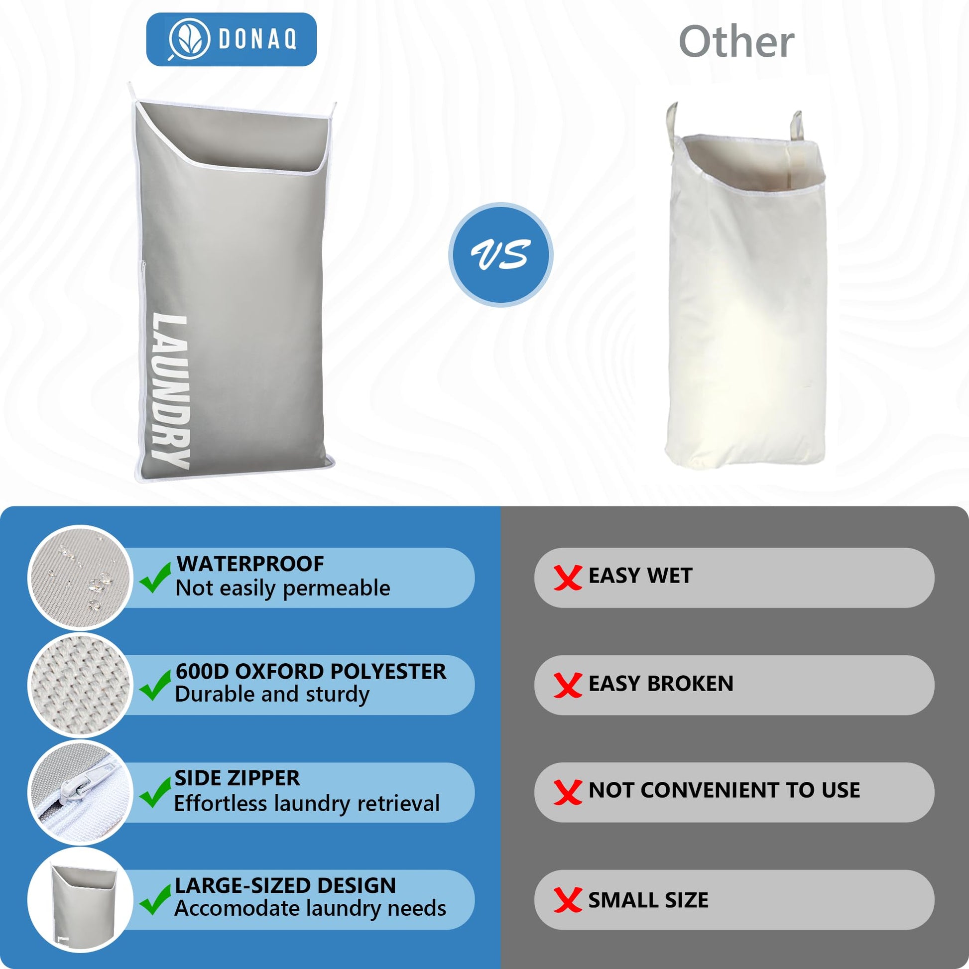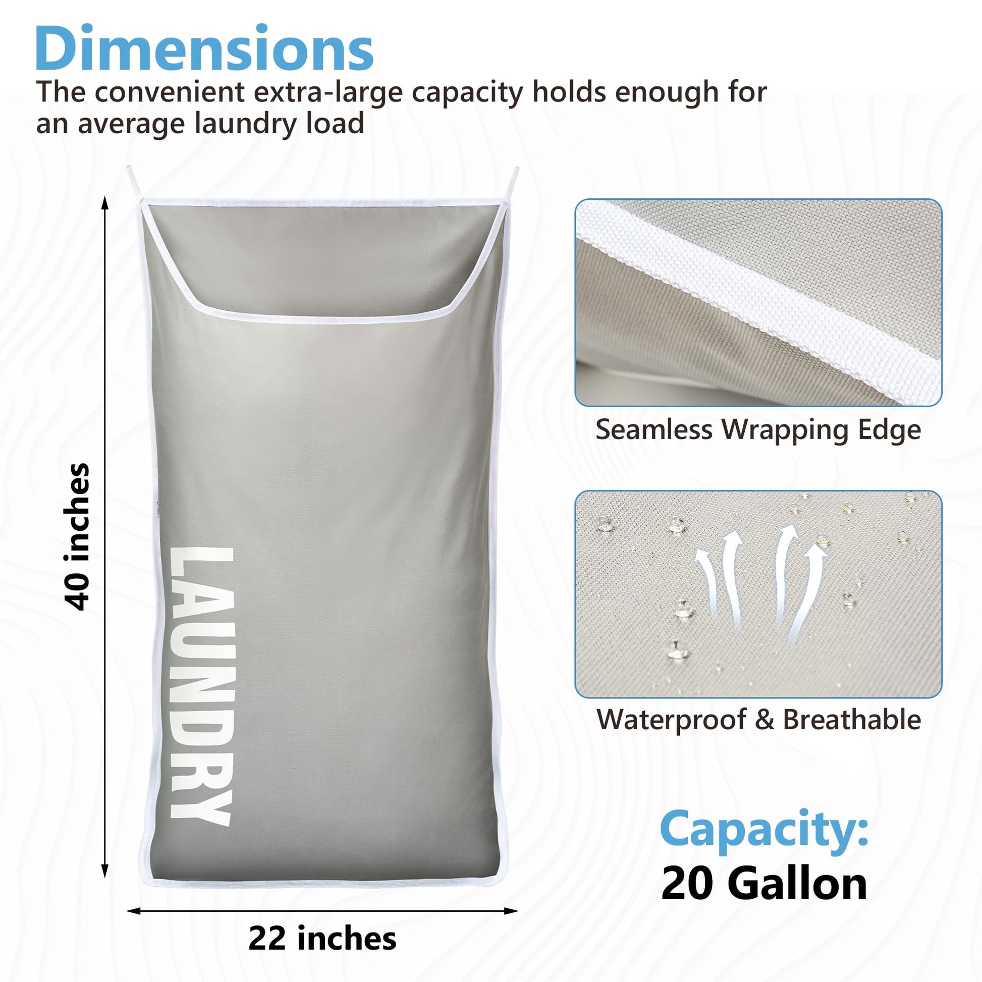 DONAQ Hanging Laundry Hamper Bag XL 40x22", Space Saving over the Door Storage Bags, Behind the Door Hampers for Dirty Clothes & Wall Mounted Basket for Bathroom, Organizer for Small Room Spaces RV