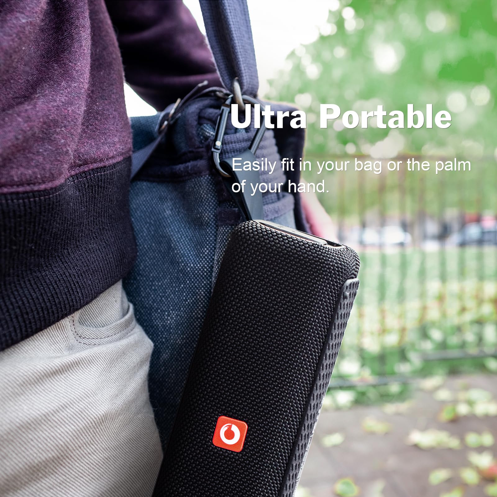 - IPX6 Waterproof, Dustproof, Crashproof: The waterproof outdoor Bluetooth speaker is made with sturdy fabric that protects it from water, sand, and dust when outdoors. The rugged silicone housing and port cover make the speaker shock-resistant and rugged.