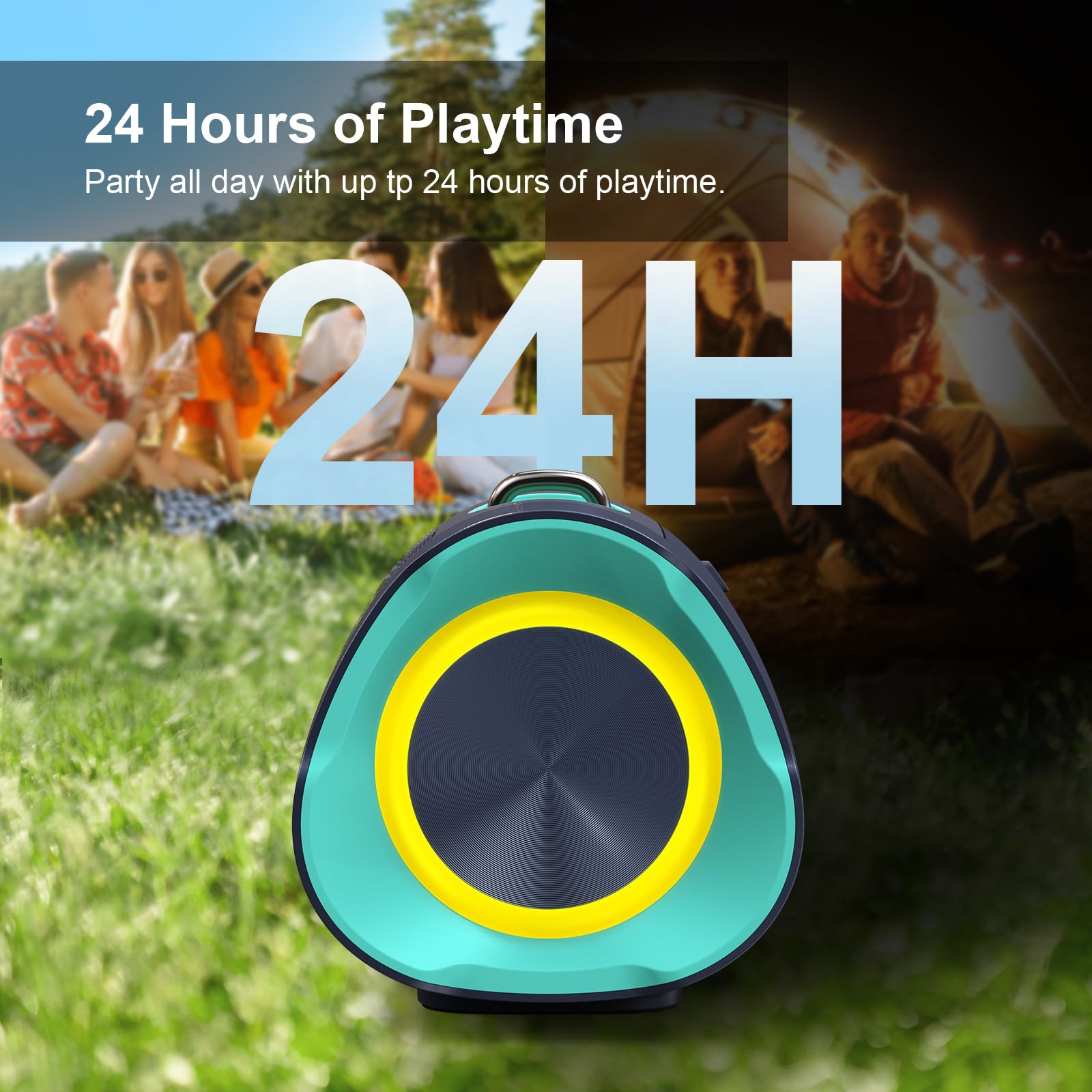 - 24 Hours of Playtime: With a remarkable 24-hour battery life, this speaker ensures the party lasts from sunrise to sunset. Whether you're moving from room to room, hitting the beach, or hosting a backyard bash, this speaker is your ultimate entertainment companion. Plus, its built-in battery sharing feature lets you charge your devices anywhere.