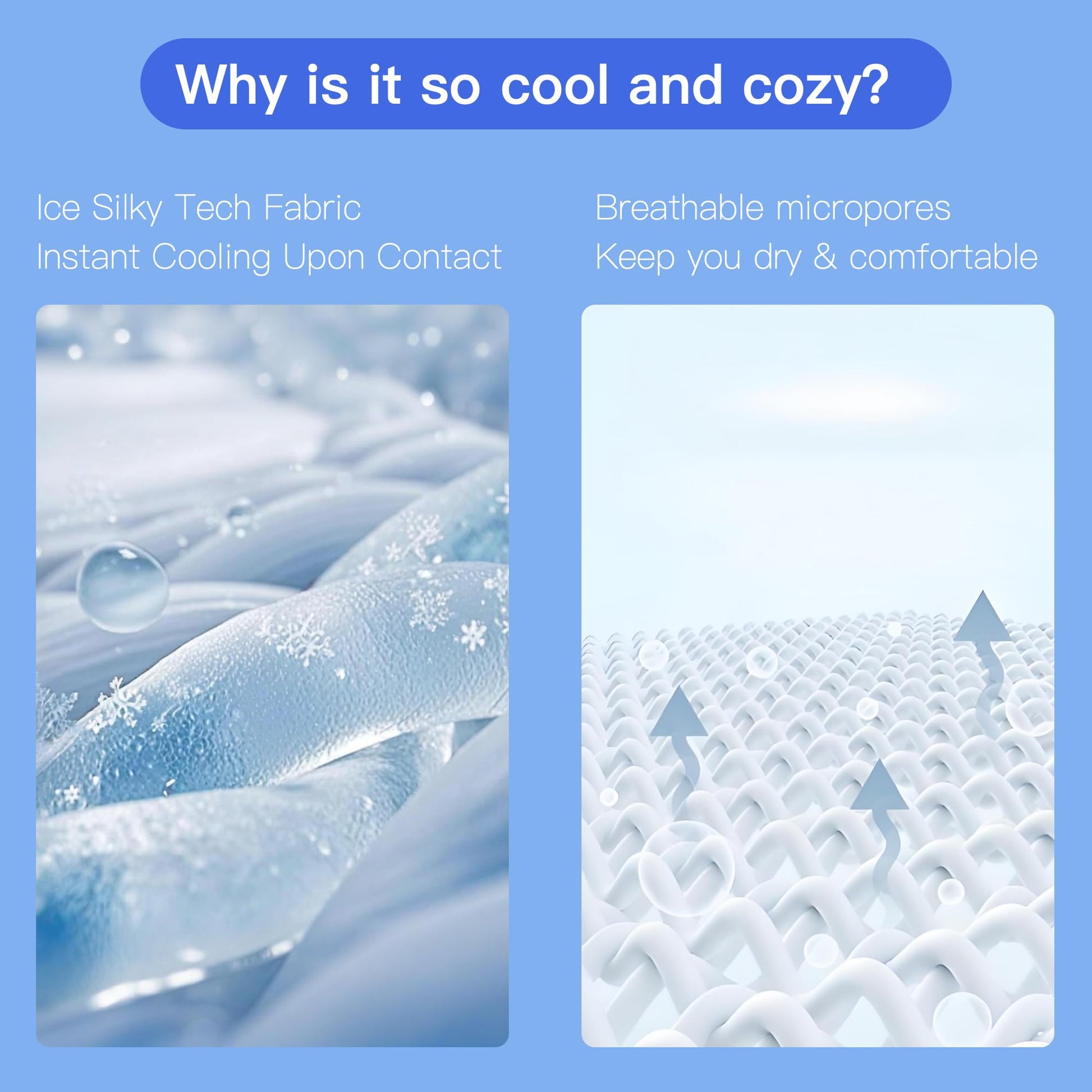 - Innovative Double-Sided Design, Cool and Breathable: Flip your way to perfect sleep! One side features nylon+PE fabric for instant cooling relief with a sleek, stylish finish. The reverse nylon side delivers breathable softness for lightweight comfort