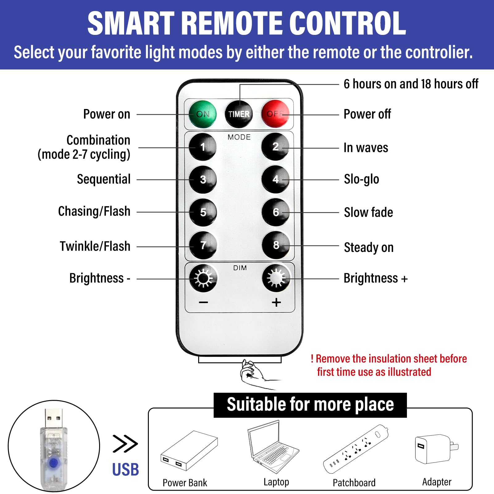- [4 Timing Mode and Safe to Touch]: The 5V low voltage makes it safe to touch, while the four convenient timing modes allow you to choose 2, 4, 6, or 8 hours of lighting, followed by 22, 20, 18, or 16 hours off, providing more options to set the perfect ambiance while conserving energy.