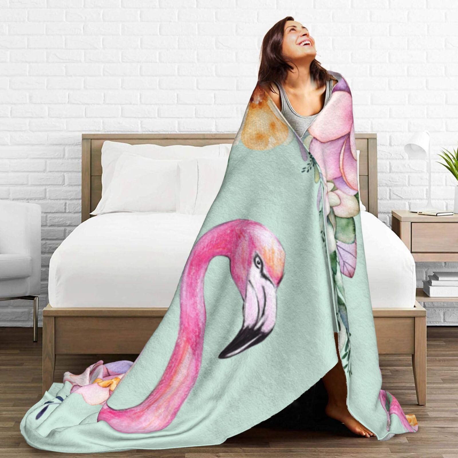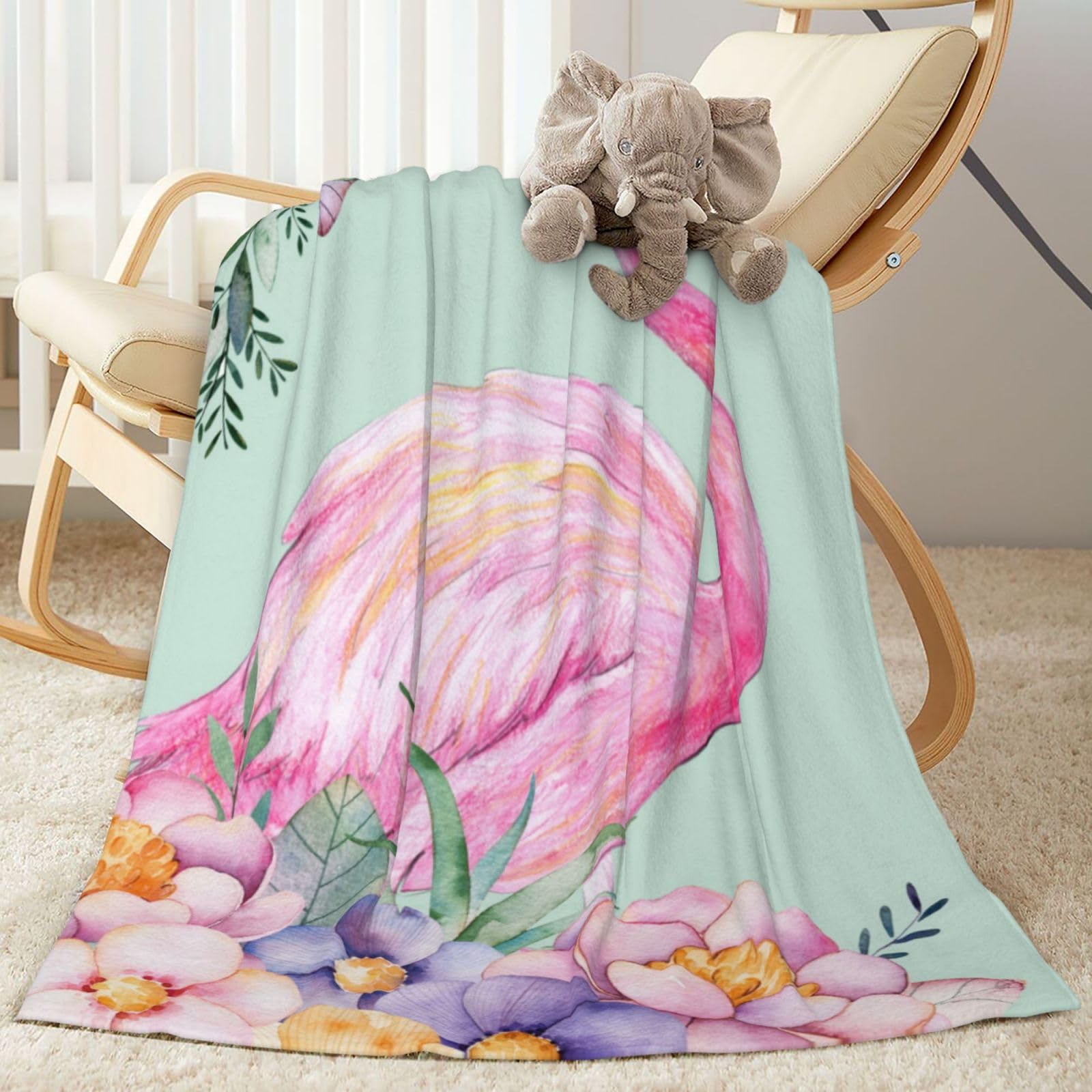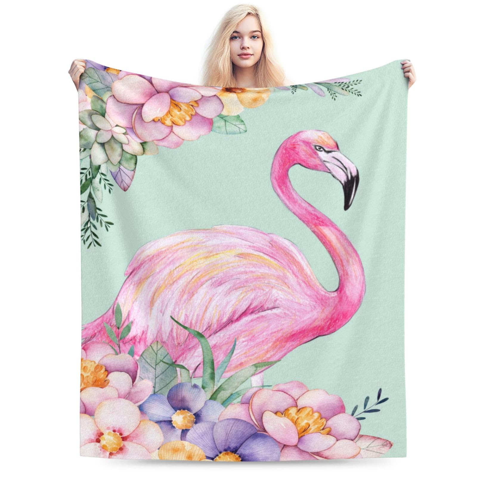 Duduho Pink Flamingo Watercolor Floral Bed Blanket Ultra Soft Throw Blanket All Season Warm Light Weight Cozy Plush Blankets for Home Bedroom Sofa Chair Travel, 50"X40"