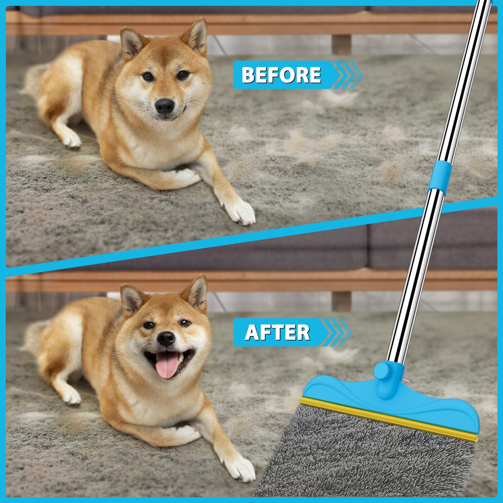 - Effectively Clear Pet Hair - Are you looking for a tool that is an effective and efficient alternative to expensive pet vacuums? We redesigned a professional pet hair removal broom, the handle of the carpet hair removal tool is made of alloy steel. The long handle pet hair removal tool made of alloy steel can withstand use by a person weighing up to 250 pounds without breaking. Pet hair removal tool consists of 3 sections in total, the length is adjustable from 16 to 45 inches