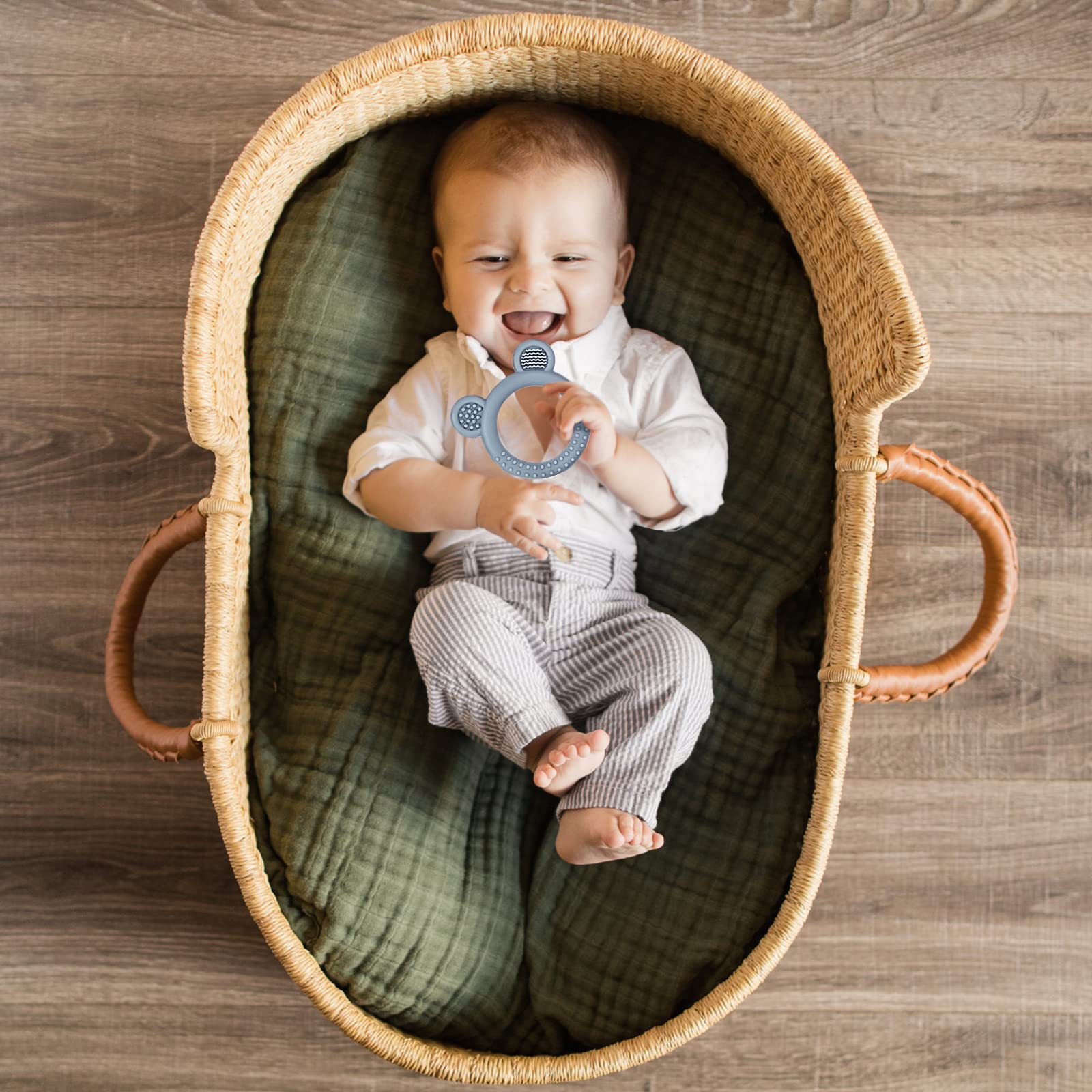 - Practical: Bear silicone teething rings are designed with different textures and bristles to clean and soothe irritated teeth and gums, effectively relieve teething pain, and massage your baby's oral muscles while chewing.