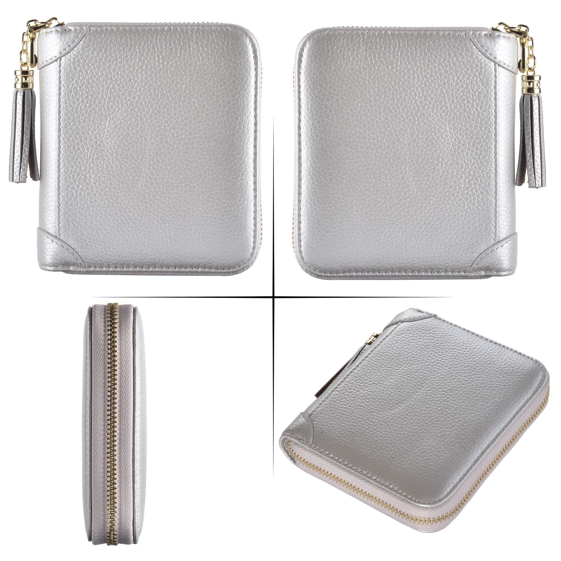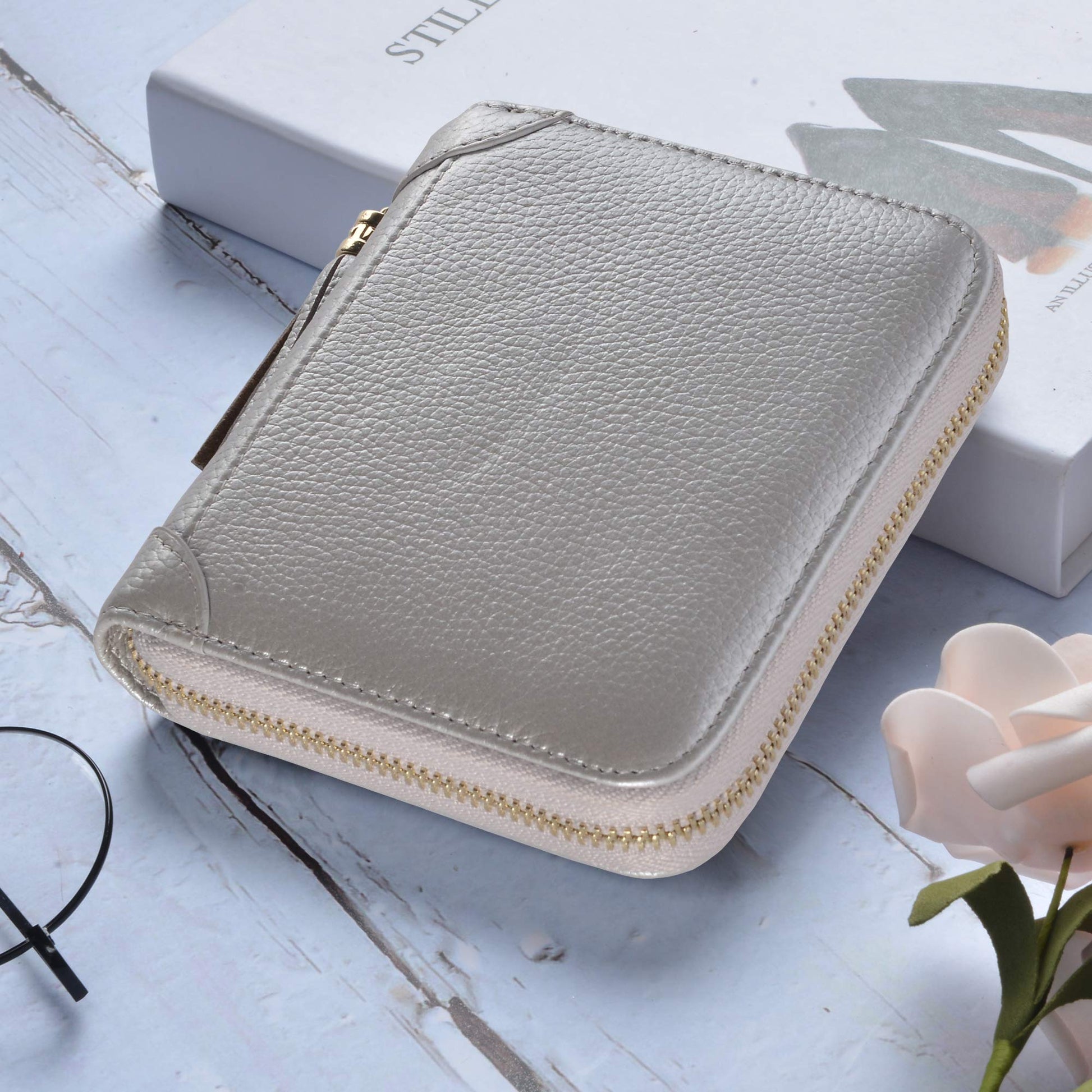 Easyoulife Womens Credit Card Holder Wallet Zip Leather Card Case RFID Blocking (Silver)