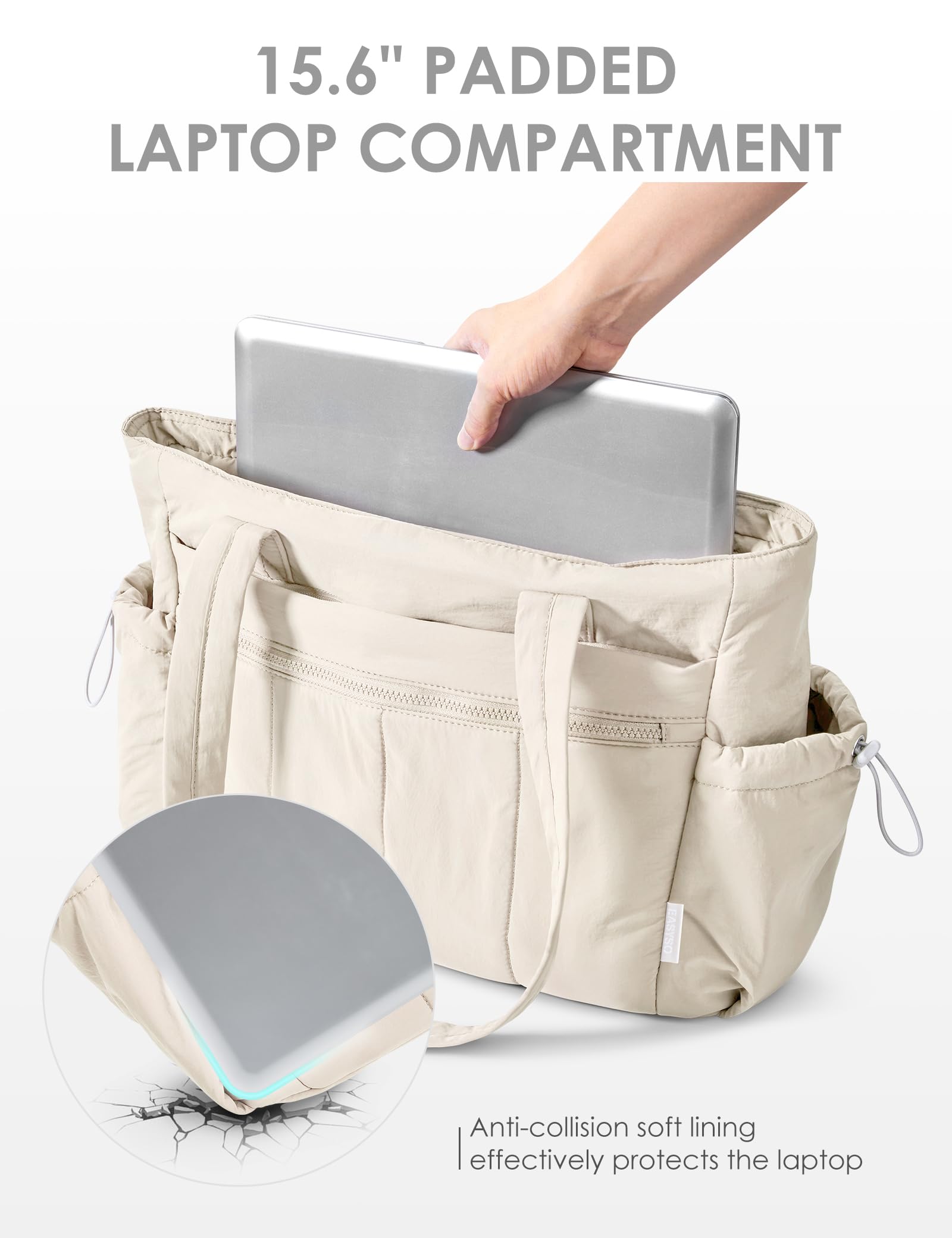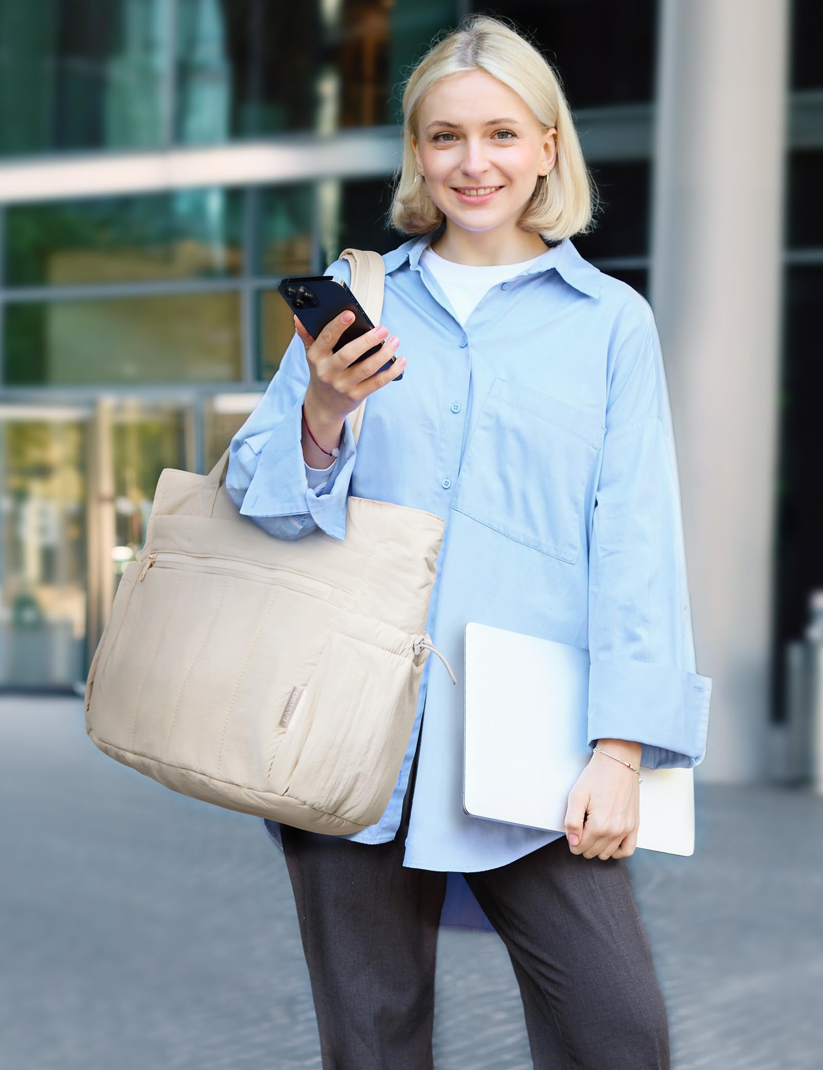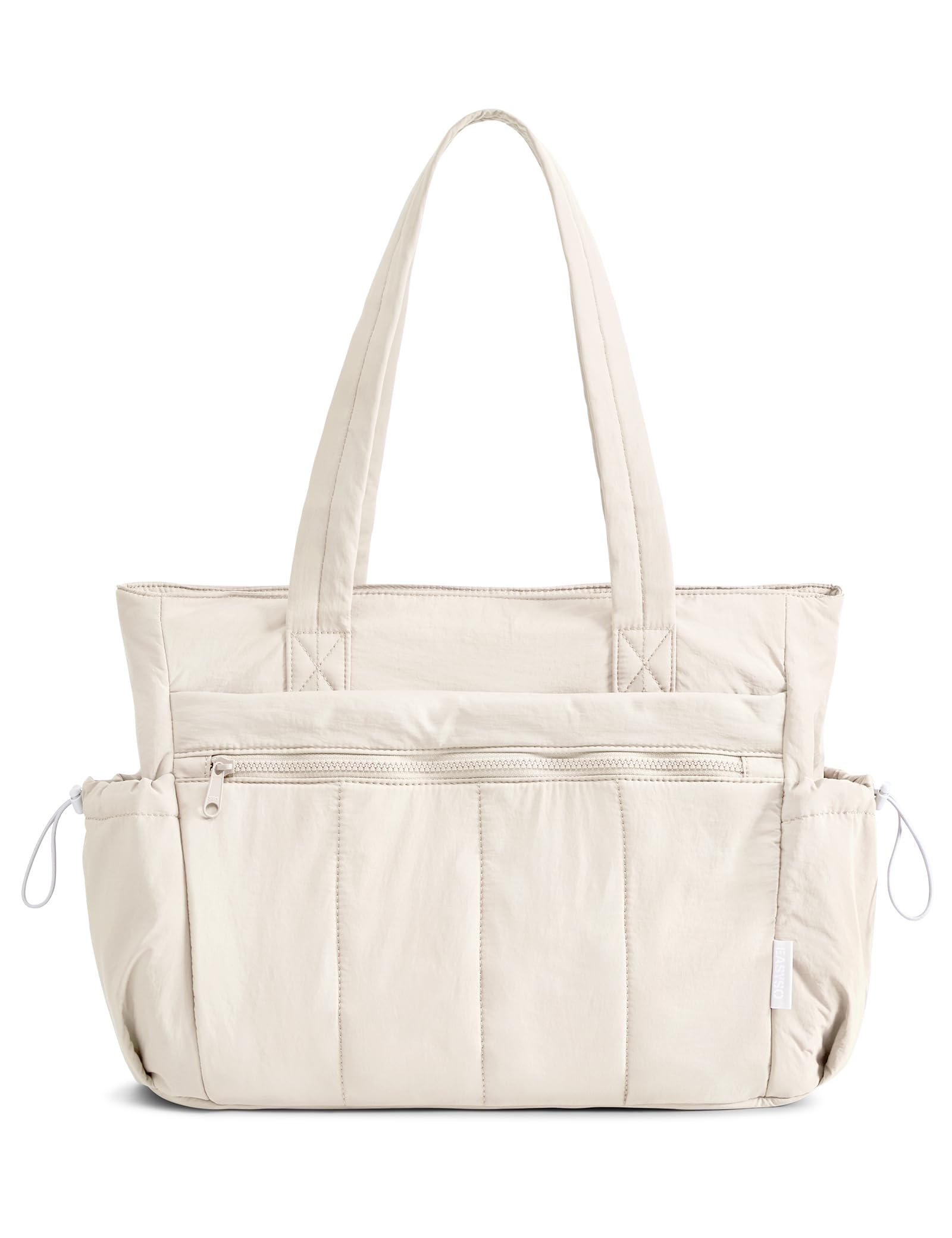 EASYSO Tote Bag for Women, Lightweight Large Puffer Bag, Quilted Shoulder Purses Handbags for Travel Work (Beige)