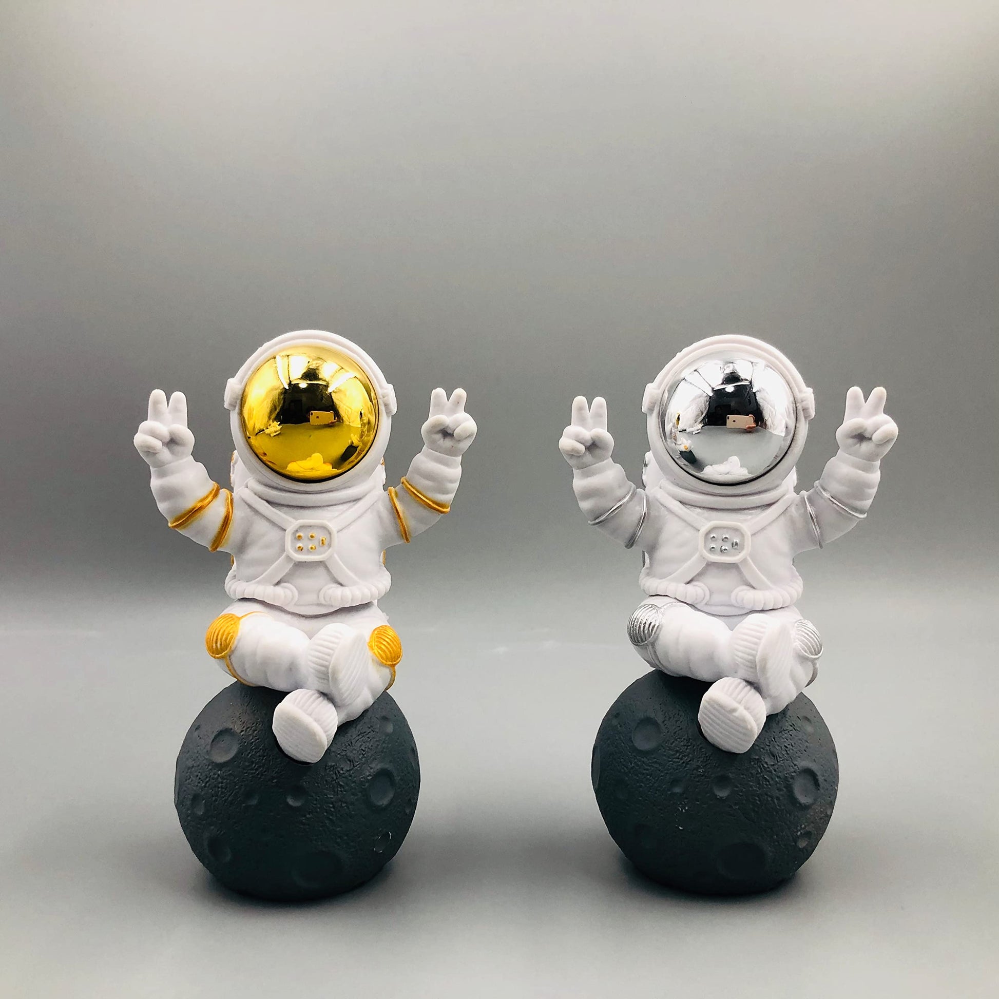 - Fine workmanship:The astronaut statue decoration adopts electroplating process, white and gold combination,which is exquisite and beautiful, simple and fashionable.this unique decoration is very suitable for cake decoration, indoor home office, living room, bedroom, classroom space theme decoration.