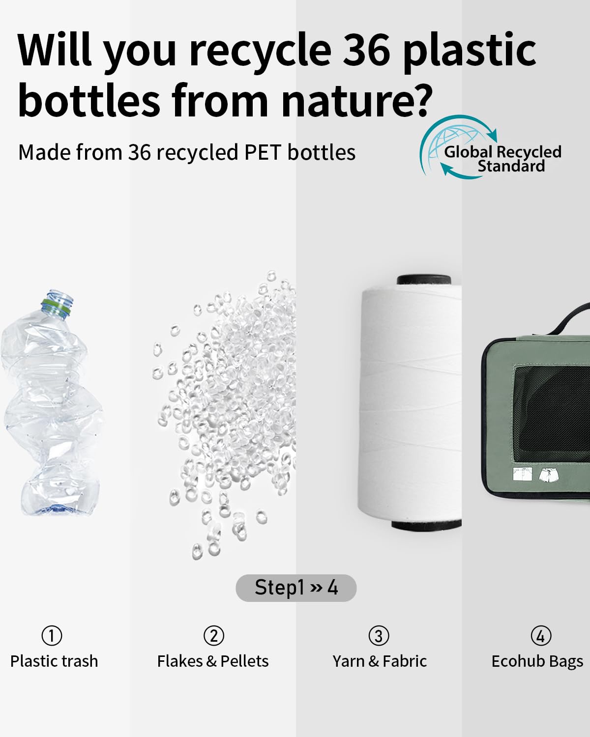 - 【Sustainable and guarantee】: ECOHUB travel packing cubes are made from at least 50% recycled materials, with fabric and lining crafted from 36 recycled PET plastic bottles. The lightweight fabric combined with YKK zippers and reinforced ripstop stitching, ensure durability for any adventure. If you have any concerns, reach out through your order. (Patent Pending)