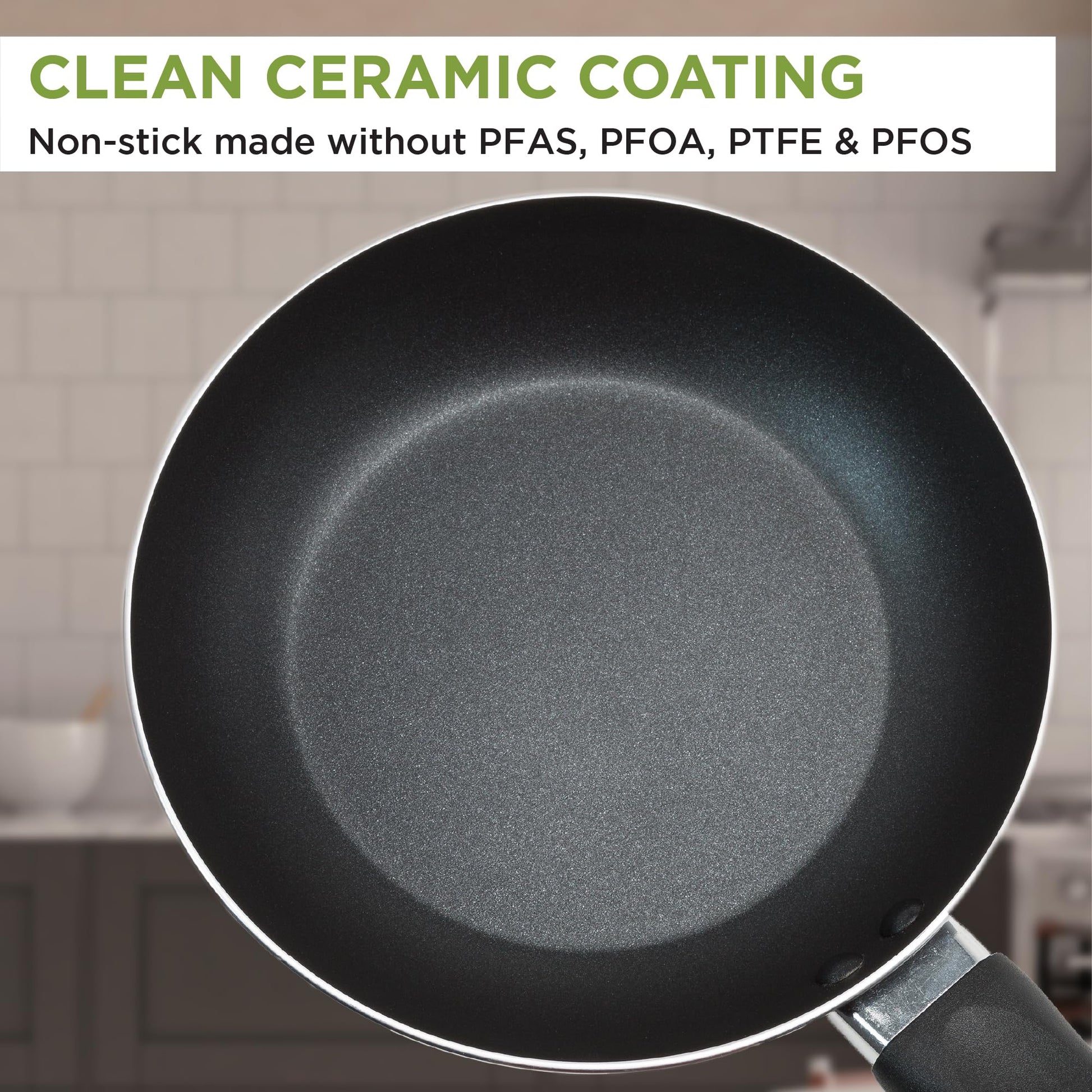- HEALTHIER COOKING: Features a high-performance, clean ceramic nonstick coating that allows food to easily slide out of the pan without adding extra oils. Made without PFOA, PTFE or PFAS.