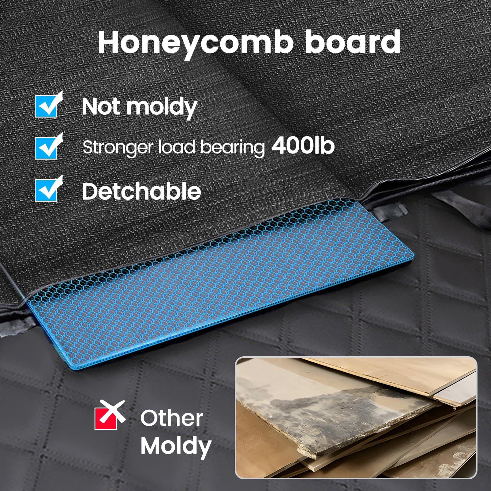 - HARD BOTTOM, 400LBS LOAD CAPACITY: The hard bottom dog car seat cover is more sturdy and stable than soft bottom dog car seat covers, with a weight-bearing capacity of up to 400 pounds (tested) and suitable for dogs of different breeds and sizes; This backseat cover has 3 detachable honeycomb thick hard bottom boards, much sturdier than thin and light wooden bottom boards on the market, and folds up to allow a person to sit next to it or to accommodate a child safety seat