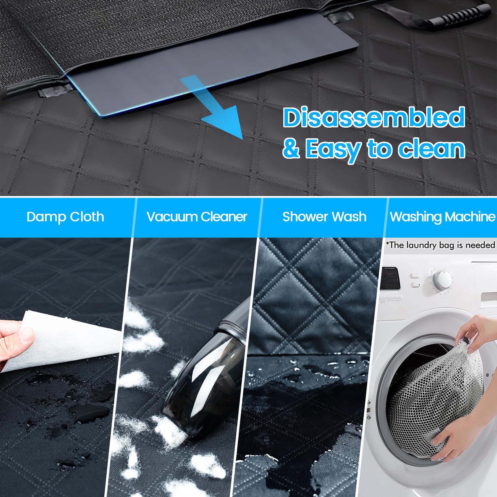 - EASY INSTALLATION, CLEANING & STORAGE: Installing our back seat pet cover for dogs is a breeze; Just lay out the thickened cover bases, tuck the seat anchors, and buckle the adjustable straps around the headrests; Daily cleaning only need to use a vacuum cleaner or wet towel for hair and liquid debris quick cleaning, you can also remove the hard base plate to put the dog pad in the washing machine for deep cleaning; It can be folded and stored directly in the trunk when not in use