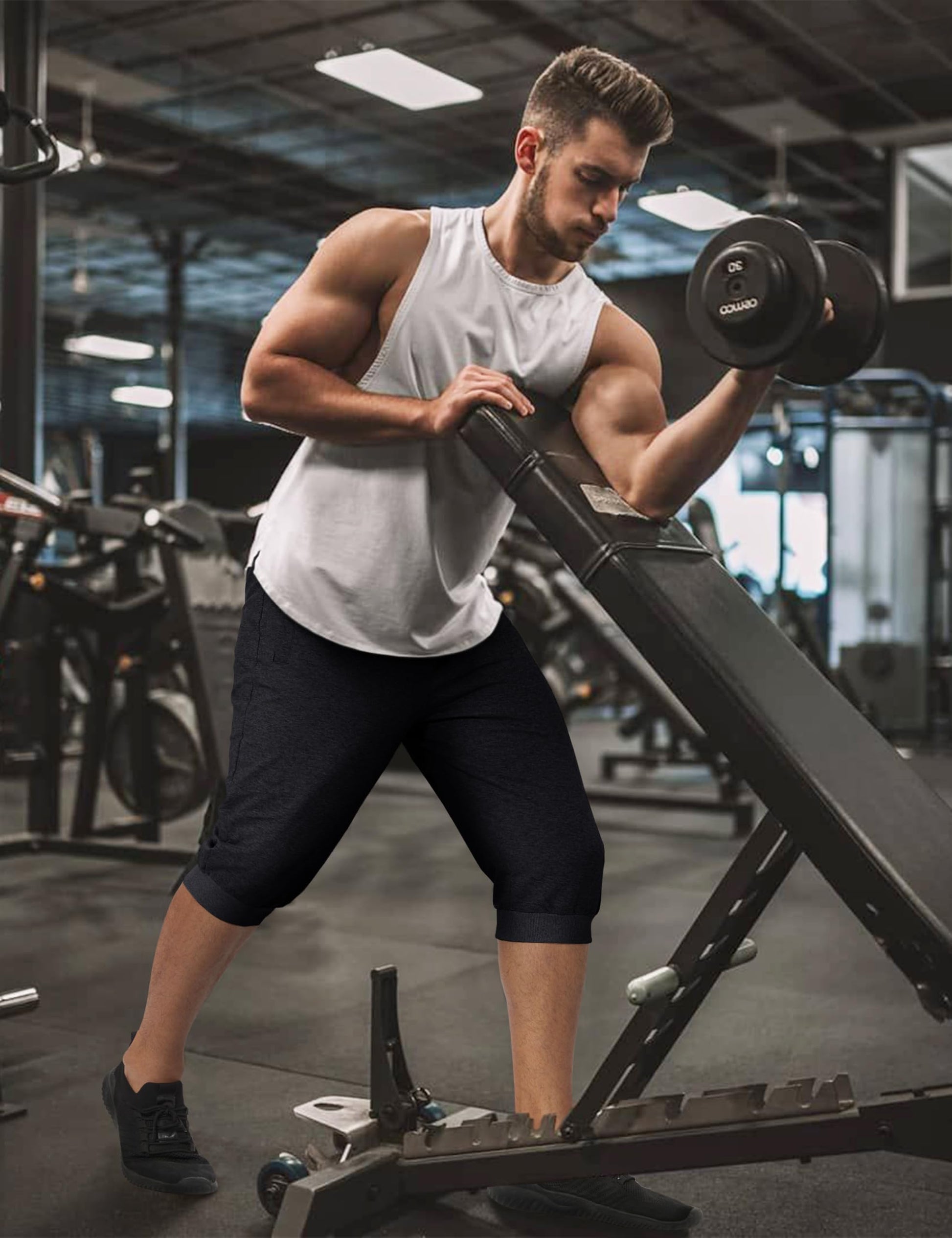 - Material: Men's 3/4 jogger pants are made of cotton blend fabric that is breathable, very soft and gentle on the skin, keeping you dry during exercise